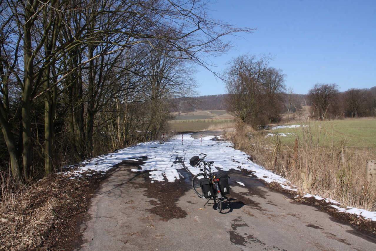 auf dem Europaradweg R1 liegt — Igitt! — Schnee im Weg ![]() 300 dpi JPEG |