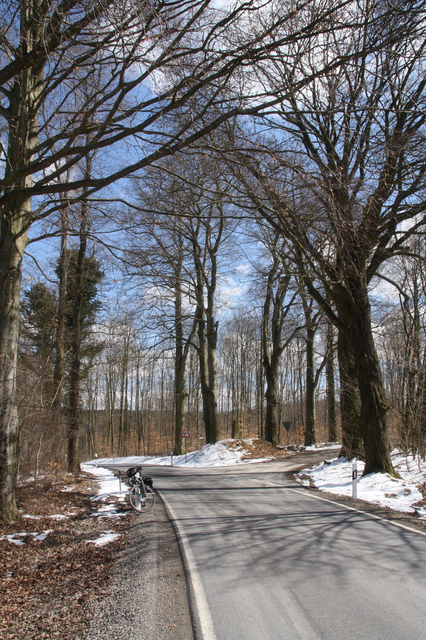 Beschreibung | Diese Tour wurde nur gefahren, da ohnehin ein Aufenthalt in Holzminden geplant war, das Wetter aber zu sonnig war, um den Tag nur im Zug zu verbringen. Die niedrigen Temperaturen und der eklige Schnee in der Landschaft waren allerdings kein schlechter Aprilscherz, sondern eiskalte Realität. Dieser Winter dauerte einfach ewig und drei Tage und zog sich bis mitten in den Frühling hinein ☹ Die Landschaft sah daher nach Mitte Februar und nicht nach Anfang April aus. Vom Stadtoldendorf bis nach Bevern wurde der Europaradweg R1 genutzt, der in diesem Abschnitt durchgängig asphaltiert ist. Das niedrige Stinkeverkehrsaufkommen und die Landschaft sprechen für diese Route im Vergleich zu den Radwegen entlang der alten B64. Da das Wetter einfach zu sonnig war, wurde ab Holzminden die Tour noch etwas in die Länge gezogen und noch ein "Umweg" durch das Rumohrtal und dann über Hohe Eiche gefahren. Während der Fotopause dort zeigten sich aber zunehmend kleinere Wolken am Himmel. Jedesmal wenn eine dieser Wolken die Sonne verdeckte, wurde es gleich richtig kalt. |