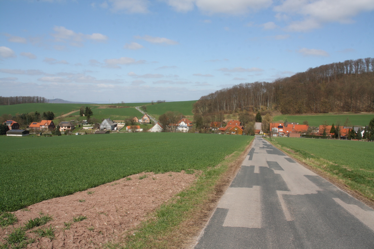 zwischen Börry und Heyen, Blick nach Nordwesten über Börry auf den Oberen Hellberg ![]() 300 dpi JPEG |