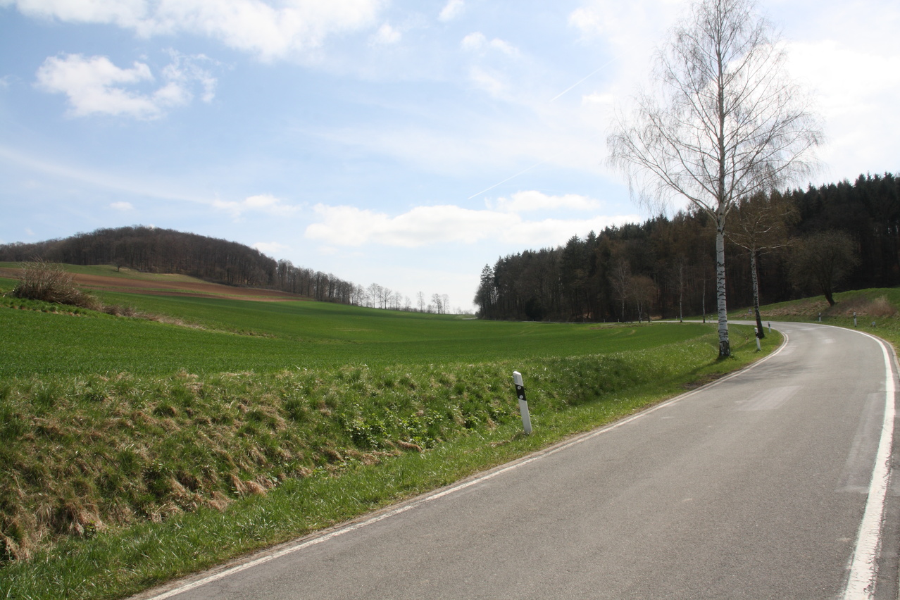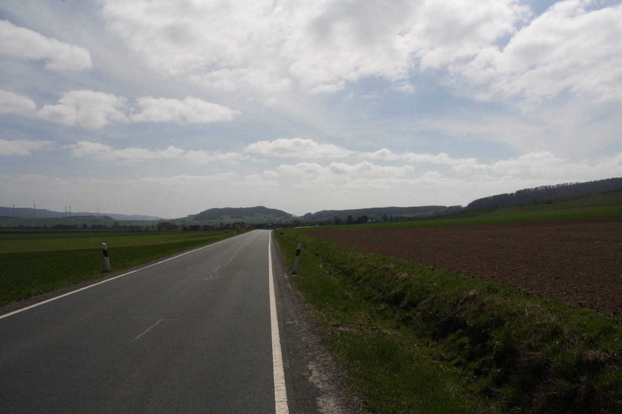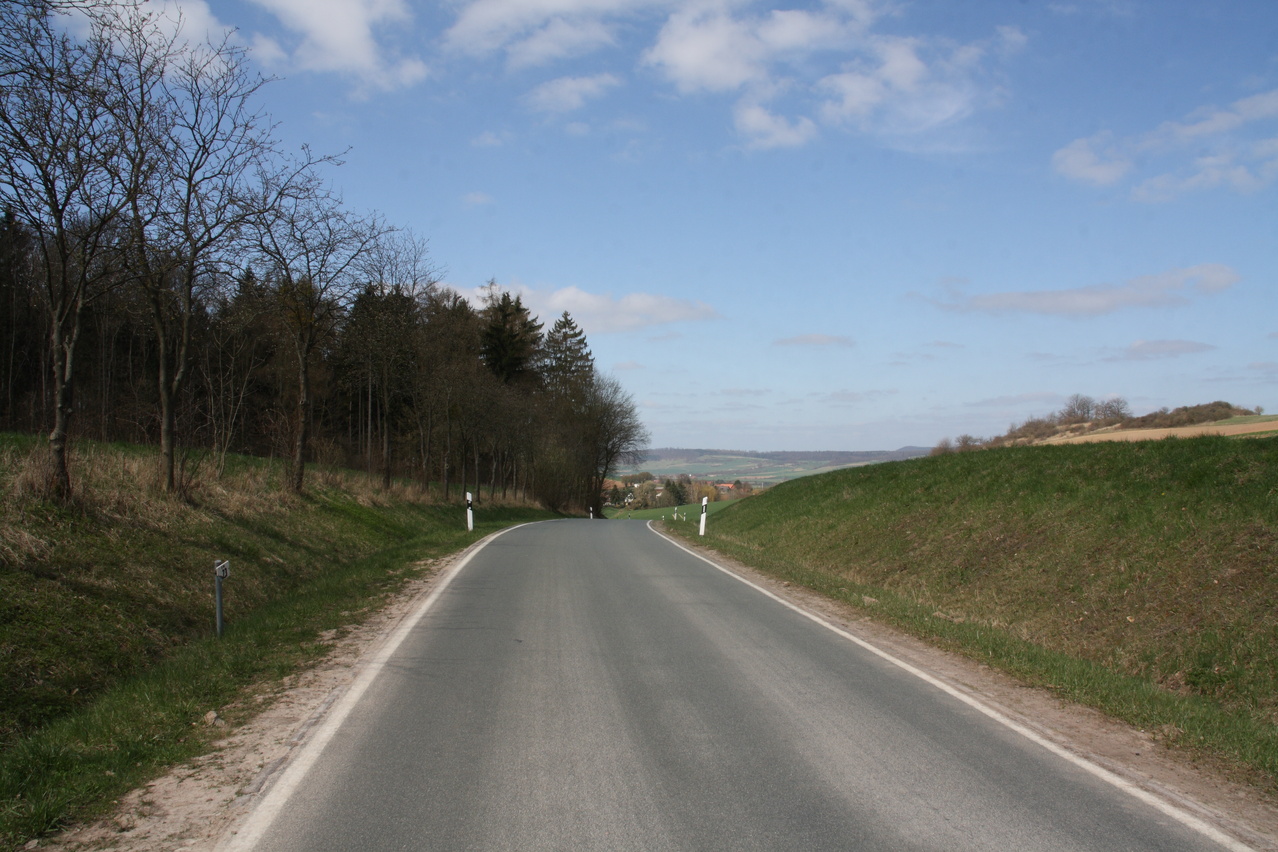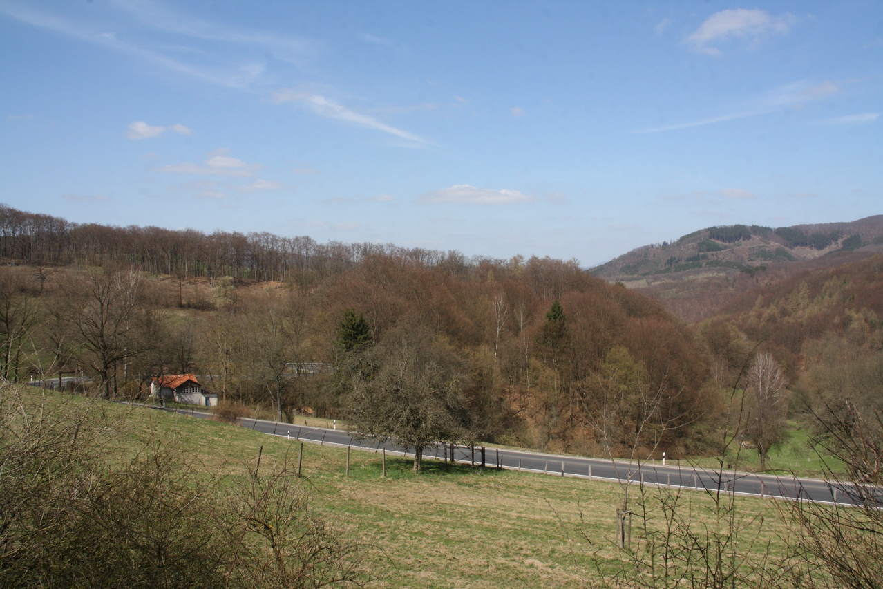 zwischen Voremberg und Völkershausen, Blick über Völkershausen auf die bis zu 15 % steile Straße nach Börry und den Hasselburg ![]() 300 dpi JPEG |