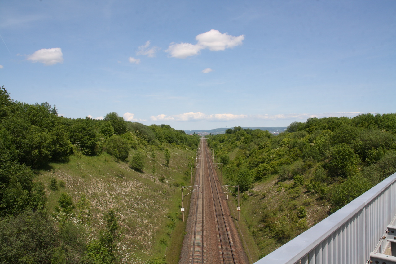 zwischen Mengershausen und Jühnde, Blick über die Schnellfahrstrecke Hannover–Würzburg Richtung Nordnordost ![]() 300 dpi JPEG |