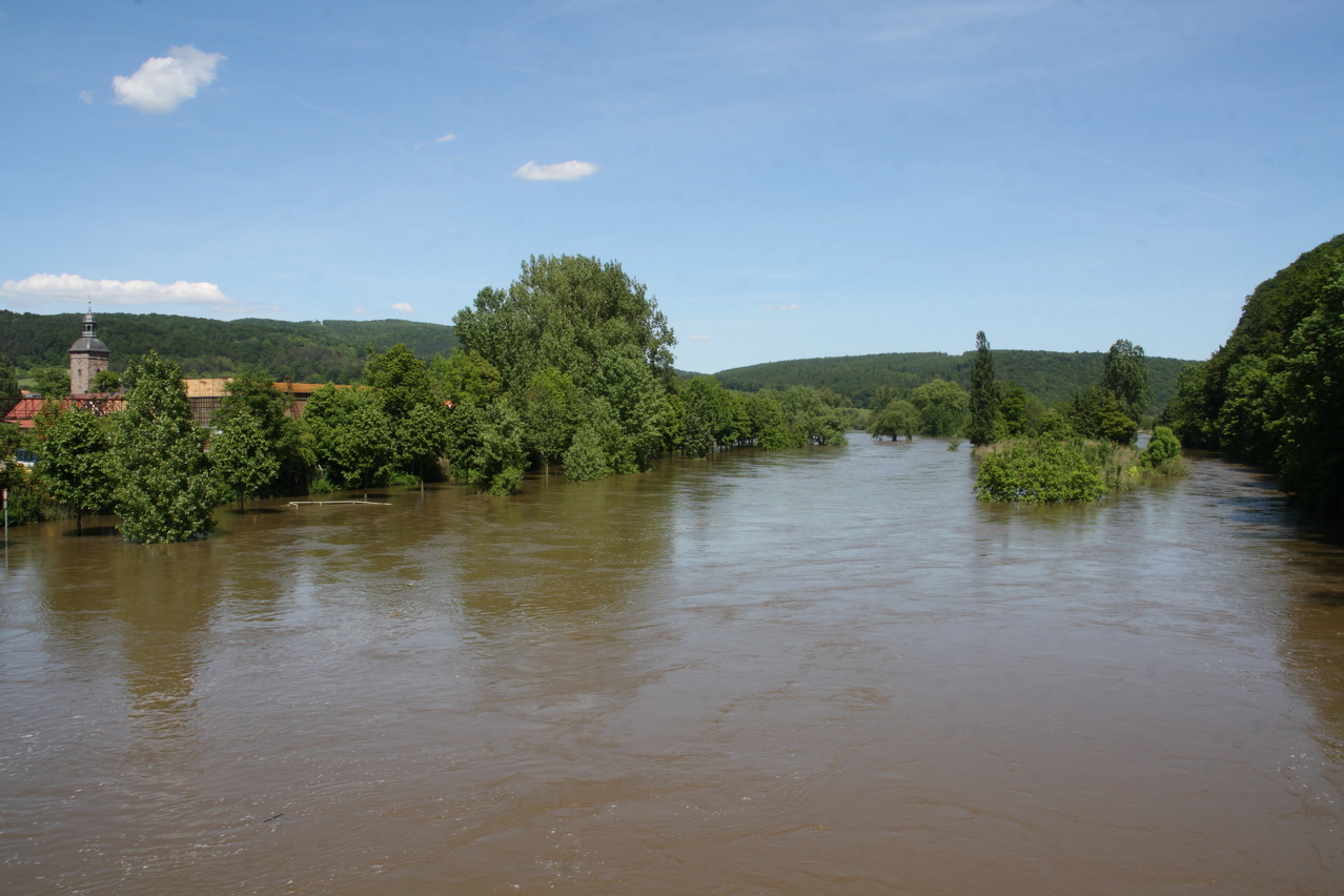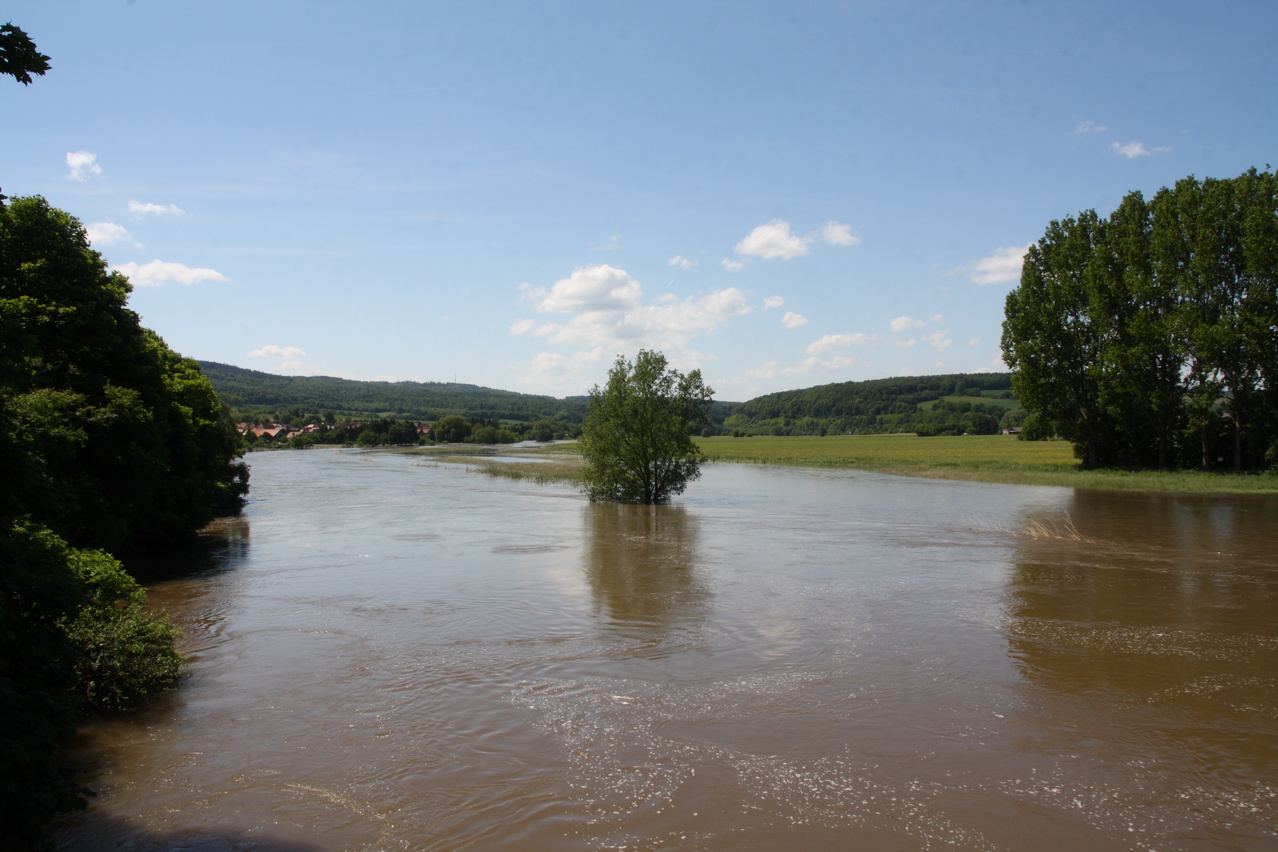 die Hochwasser führende Werra bei Hedemünden, Blick flussabwärts ![]() 300 dpi JPEG |
