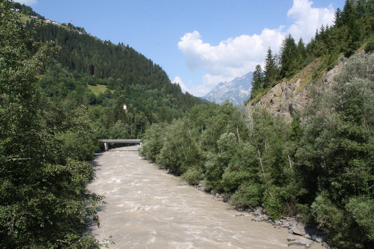 Engstelle im Oberinntal etwas weiter flussaufwärts, Blick flussabwärts ![]() 300 dpi JPEG |