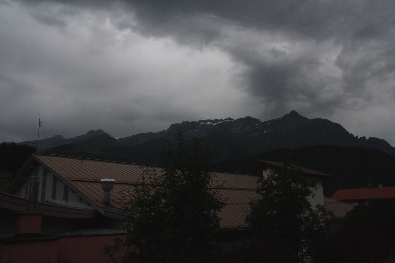 Blick über Nauders auf den Piz Mundin bei näher kommendem Regen ![]() 300 dpi JPEG |