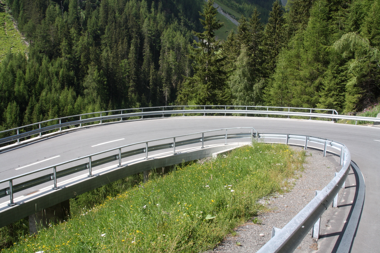 trotz ihres engen Kurvenradius steht diese Kehre teilweise auf Pfeilern über dem Abgrund ![]() 300 dpi JPEG |