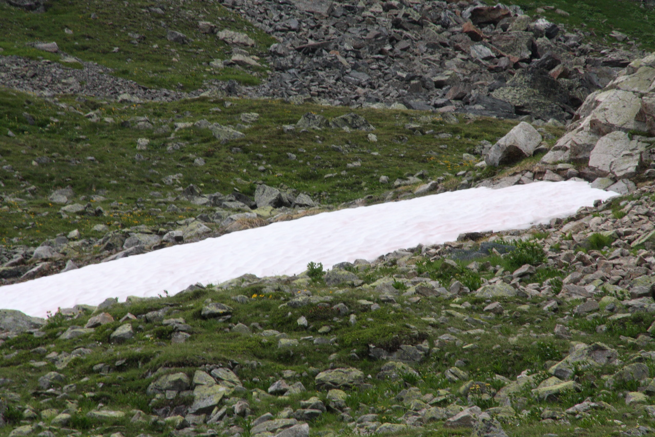 ein Schneerest, durch die Besiedelung mit Schneealgen rosa gefärbt ![]() 300 dpi JPEG |