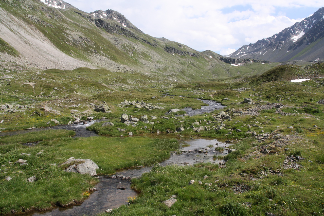 die Susasca im Val Susasca, Blick flussaufwärts, im Hintergrund das Flüela-Schwarzhorn ![]() 300 dpi JPEG |
