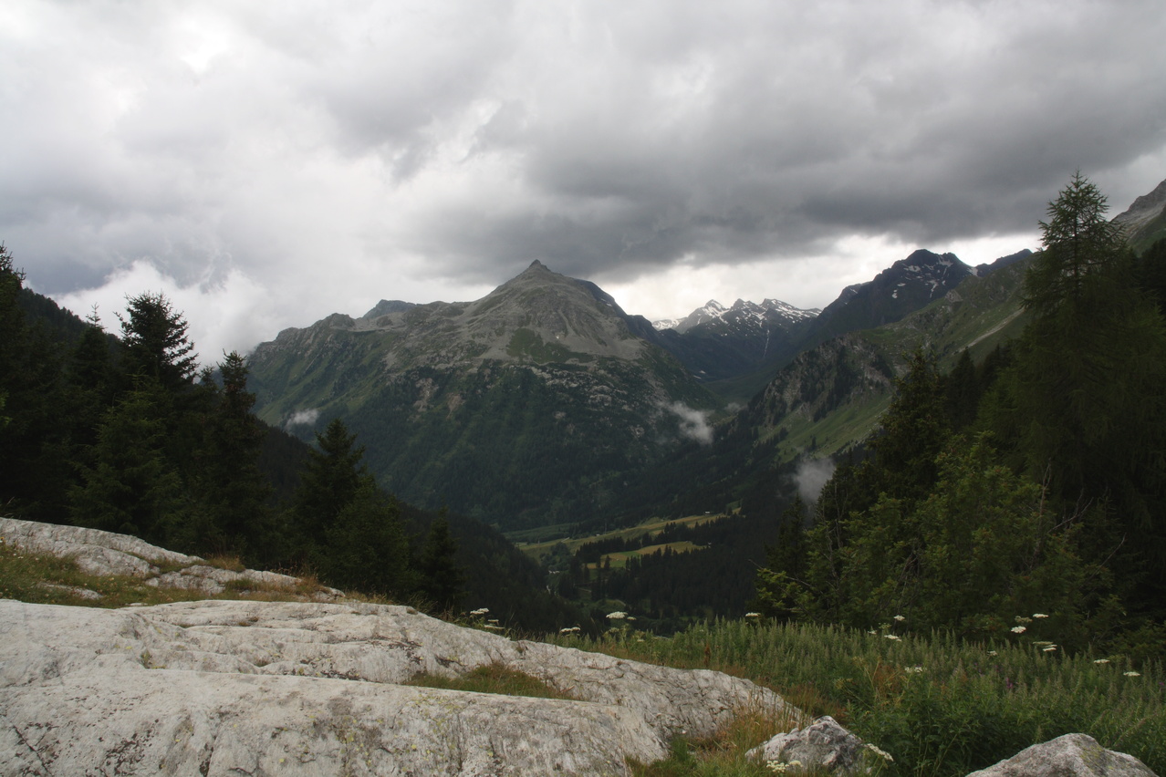 Blick über das obere Ende des Bergells auf den Piz Lizun in Bildmitte ![]() 300 dpi JPEG |