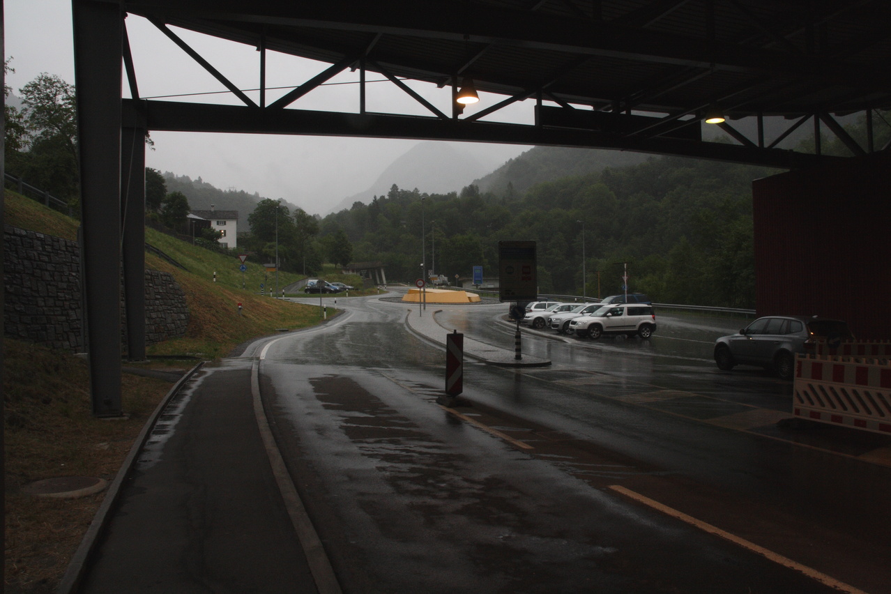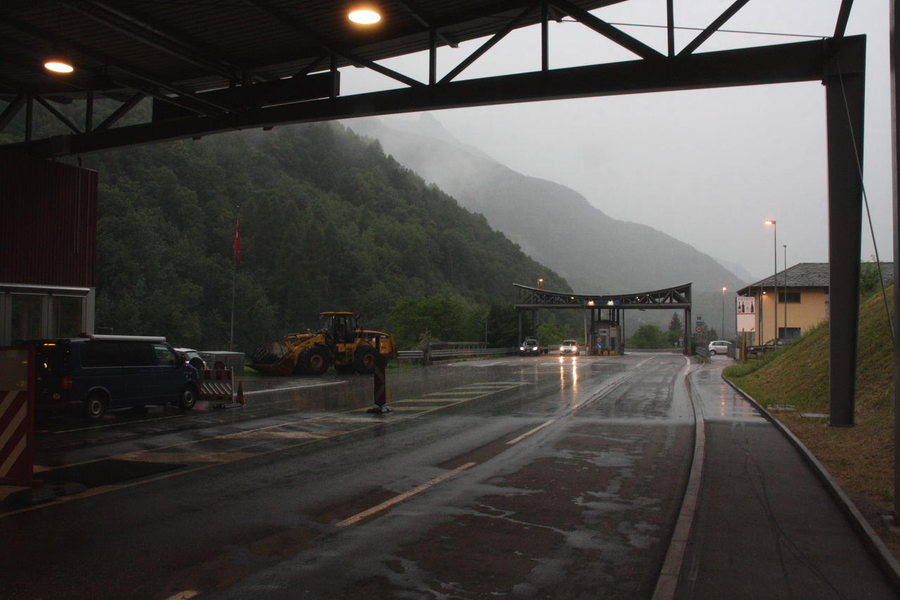 Grenze zwischen Schweiz und Italien bei Castasegna, Blick von der Schweizer Zollstation aus in die Schweiz ![]() 300 dpi JPEG |