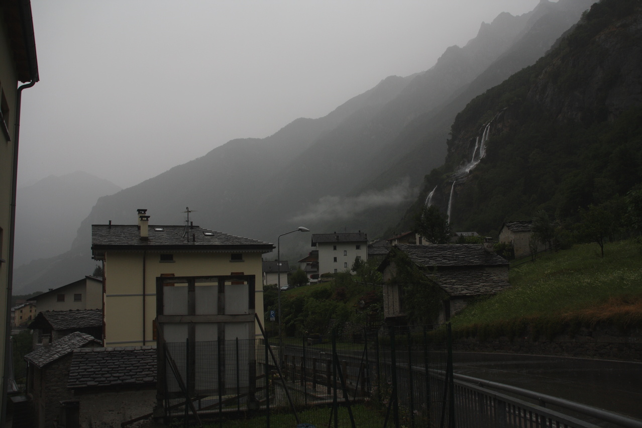 Blick durch den Starkregen über Bondo nach Osten ![]() 300 dpi JPEG |