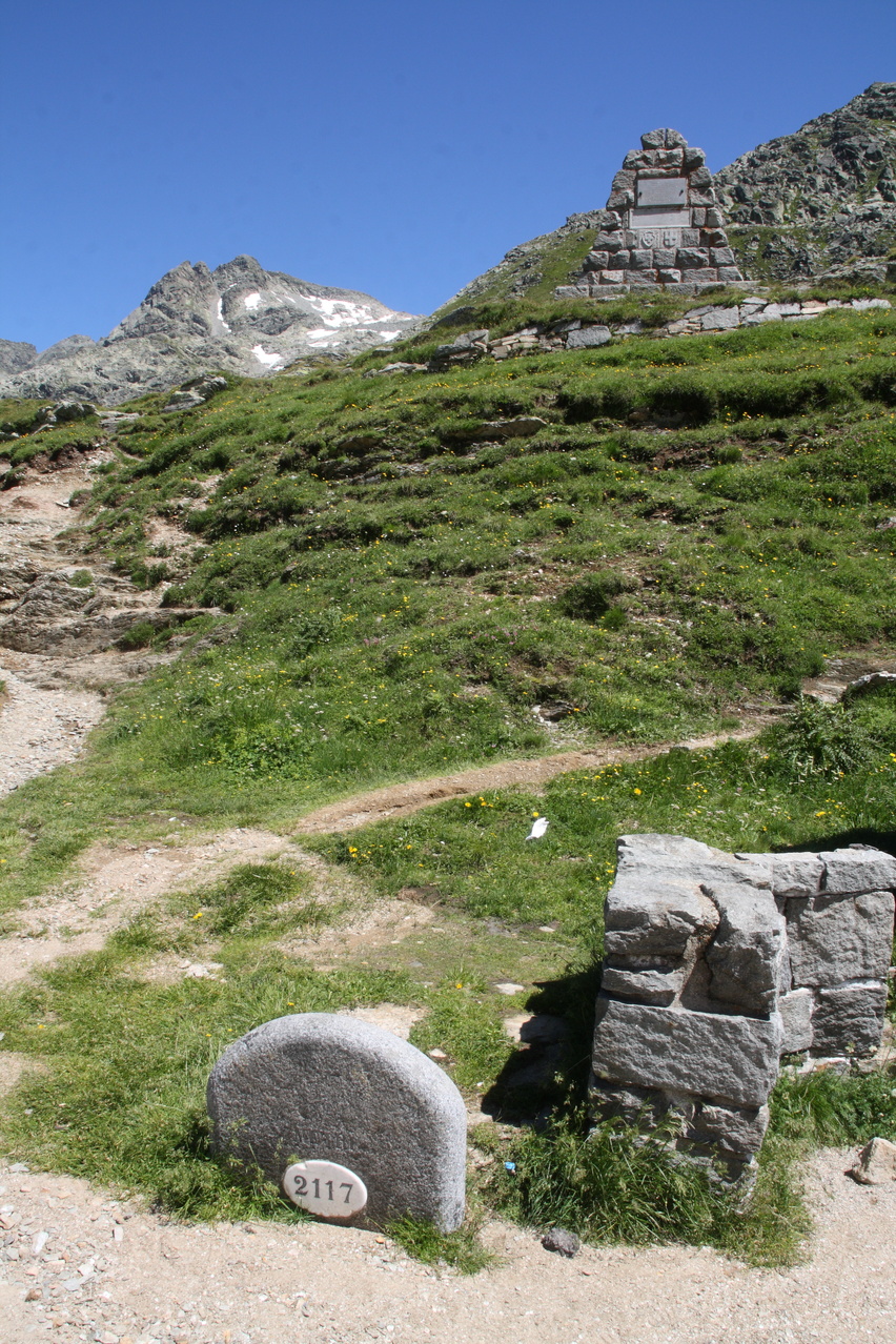 Splügenpass, Passhöhe, Blick nach Osten, alter Stein mit Höhenangabe ![]() 300 dpi JPEG |
