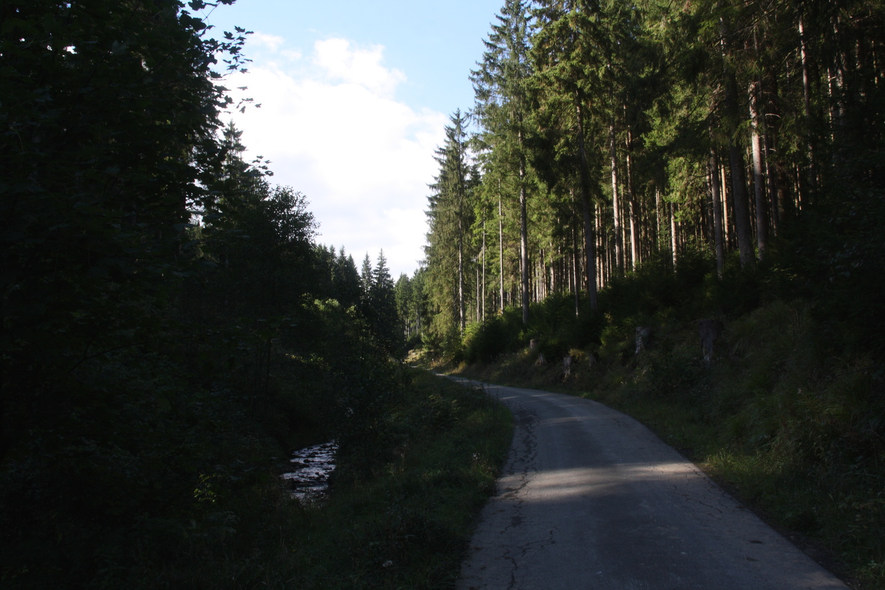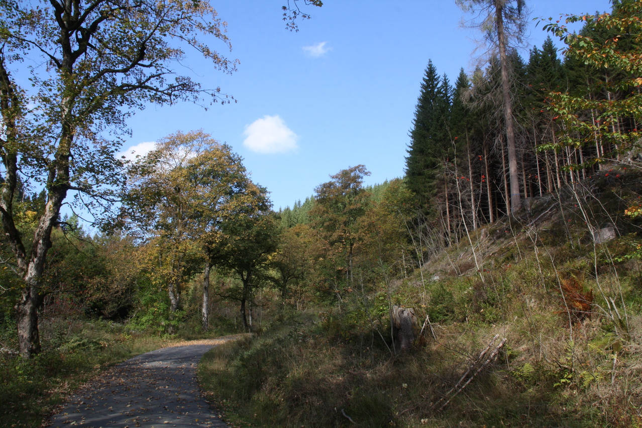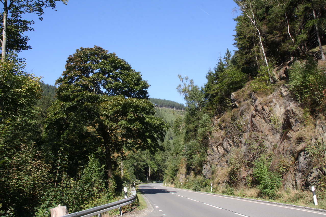 Beschreibung | Bei sehr sonnigem, aber nicht gerade warmem Wetter wurde noch einmal eine Harztour gefahren. Wegen der niedrigen Temperaturen wurde nur der relativ niedrige Schalke als Bergziel gewählt, wobei eine bisher nicht gefahrene Route gewählt wurde, die allerdings ein geländegängiges Fahrrad erfordert. Südlich von Schulenburg beginnt der eigentliche Anstieg zum Schalke zunächst auf einer alten ashpaltierten Straße. Im Verlauf des Riesenbachtals wechselt der Fahrbahnbelag auf Schotter, der teilweise recht lose ist und zudem im Schatten recht matschig war. Streckenweise verläuft die Schotterpiste direkt am Steilhang. Sicherungen gibt es dort nicht, sodass sich die Fahrlinie automatisch auf die Bergseite verlagert. Dieser Streckenabschnitt vermittelt durchaus ein Fahrgefühl, das sonst eher im Hochgebirge aufkommt. Danach folgt ein mitunter steiler Streckenabschnitt mit sehr schlechtem Belag. Größere Steine in der Fahrbahn behindern die Fahrt merklich. Danach wechseln Schotterstrecken und asphaltierte Abschnitte einer alten Straße. Dafür ist die Strecke vom Okerstausee bis zum Schalke frei von Stinkeverkehr. Obwohl sich die Natur bis auf einige Laubbäume noch sehr grün zeigte, vermittelten die niedrigen Temperaturen und die schon tief stehende Sonne eine reichlich herbstliche Atmosphäre und das Gefühl, dass dies die letzte Harztour in diesem Jahr gewesen sein könnte. |