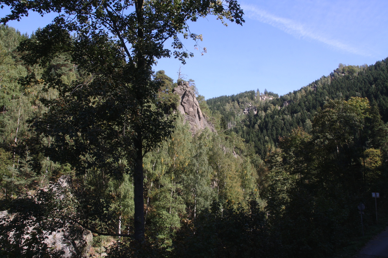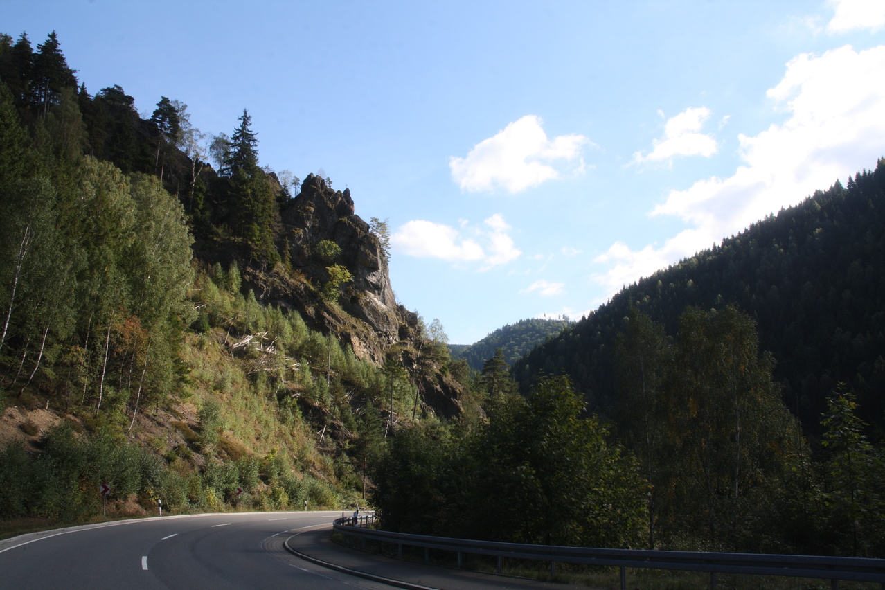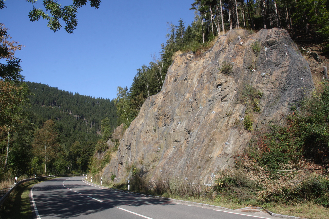 Beschreibung | Bei sehr sonnigem, aber nicht gerade warmem Wetter wurde noch einmal eine Harztour gefahren. Wegen der niedrigen Temperaturen wurde nur der relativ niedrige Schalke als Bergziel gewählt, wobei eine bisher nicht gefahrene Route gewählt wurde, die allerdings ein geländegängiges Fahrrad erfordert. Südlich von Schulenburg beginnt der eigentliche Anstieg zum Schalke zunächst auf einer alten ashpaltierten Straße. Im Verlauf des Riesenbachtals wechselt der Fahrbahnbelag auf Schotter, der teilweise recht lose ist und zudem im Schatten recht matschig war. Streckenweise verläuft die Schotterpiste direkt am Steilhang. Sicherungen gibt es dort nicht, sodass sich die Fahrlinie automatisch auf die Bergseite verlagert. Dieser Streckenabschnitt vermittelt durchaus ein Fahrgefühl, das sonst eher im Hochgebirge aufkommt. Danach folgt ein mitunter steiler Streckenabschnitt mit sehr schlechtem Belag. Größere Steine in der Fahrbahn behindern die Fahrt merklich. Danach wechseln Schotterstrecken und asphaltierte Abschnitte einer alten Straße. Dafür ist die Strecke vom Okerstausee bis zum Schalke frei von Stinkeverkehr. Obwohl sich die Natur bis auf einige Laubbäume noch sehr grün zeigte, vermittelten die niedrigen Temperaturen und die schon tief stehende Sonne eine reichlich herbstliche Atmosphäre und das Gefühl, dass dies die letzte Harztour in diesem Jahr gewesen sein könnte. |
