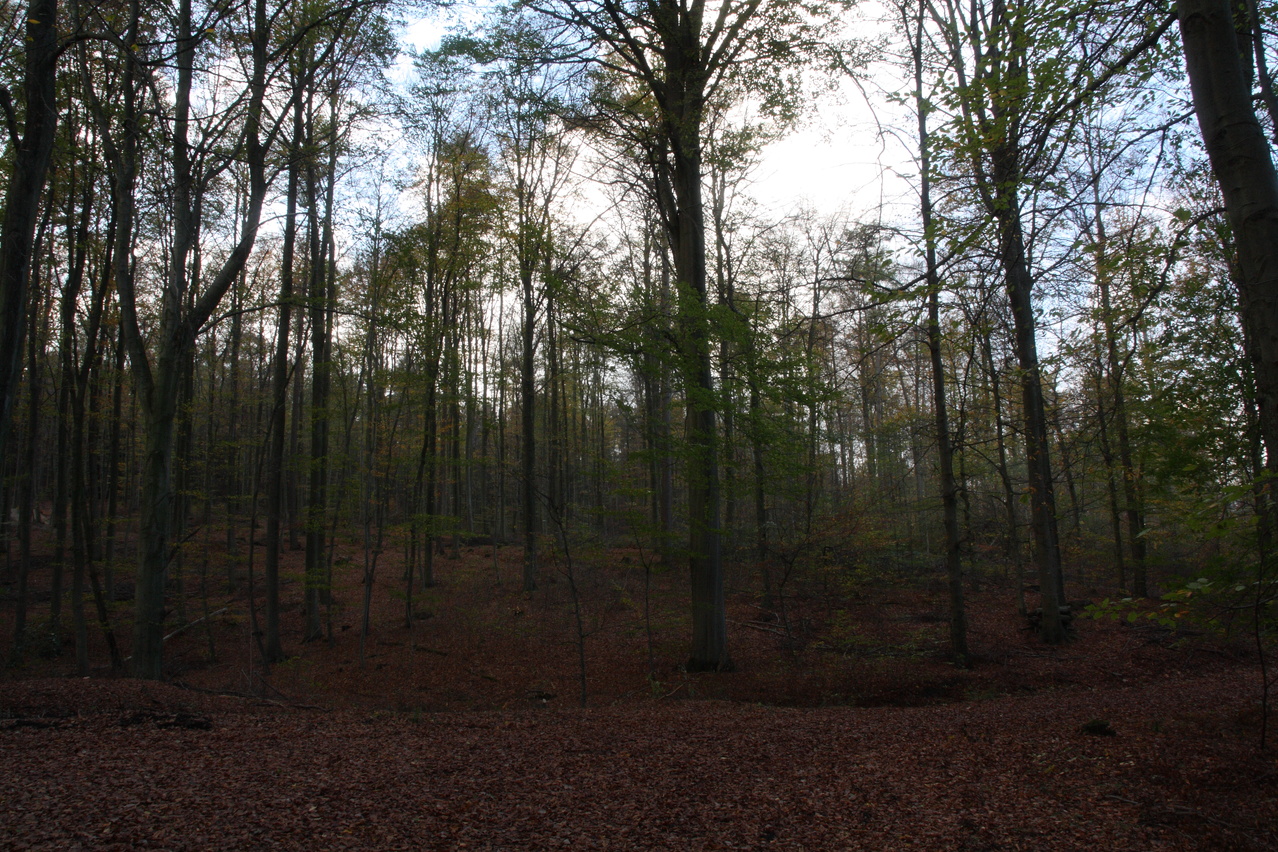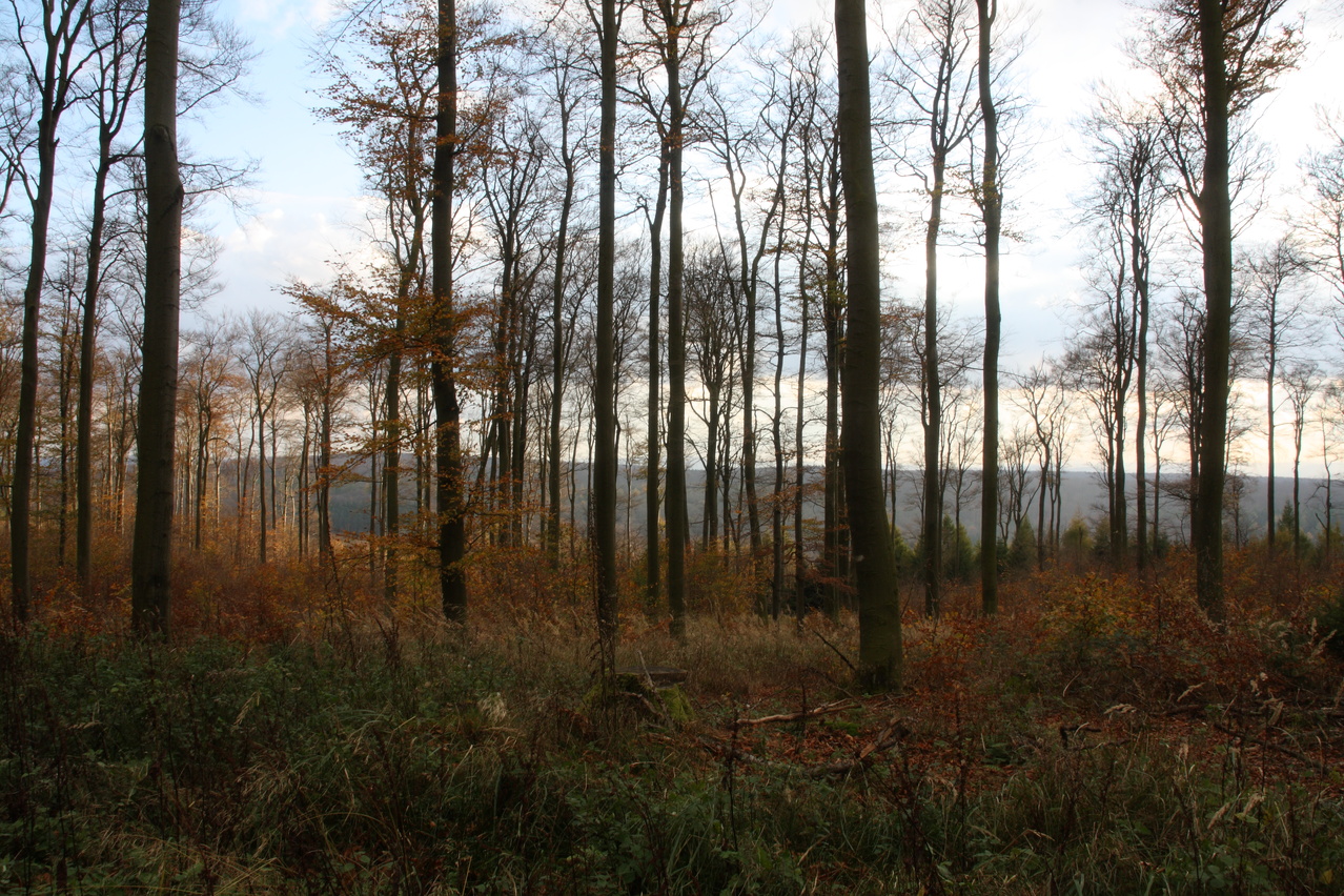 Fichten sorgen für etwas Grün im tristen Buchenwald ![]() 300 dpi JPEG |