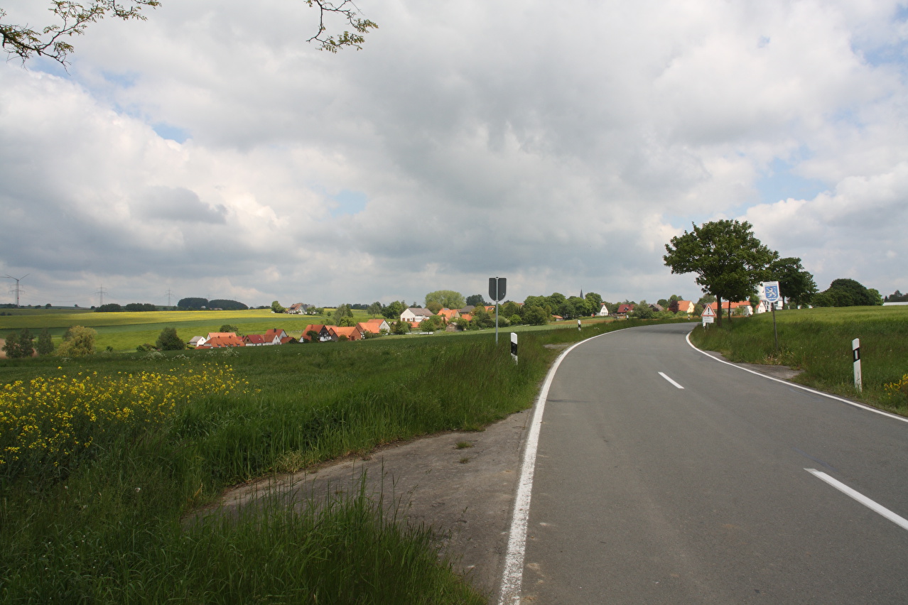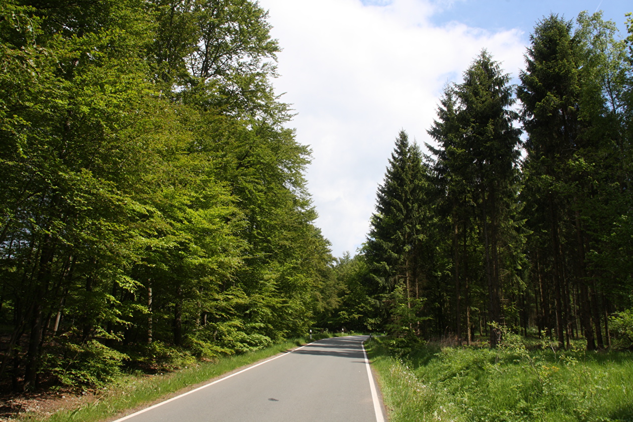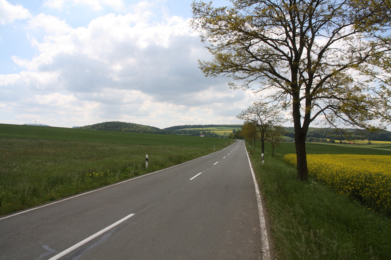 Beschreibung | Nachdem der Köterberg unlängst vom Deister aus gesichtet worden war, wurde eine Tour auf den "Monte Wau-Wau" fällig. Im späten Frühjahr bietet sich eine Tour zum Köterberg wegen des noch frischen Laubes an den Bäumen und sichtbarer Vegetation am Laubwaldboden generell an. Obwohl die Tour nicht einmal auf 500 Meter rauf führte, sammelten sich in deren Verlauf einige Höhenmeter an. Sonderlich warm war es an dem Tag nicht, da sich die Sonne immer wieder hinter Wolken verbarg. "Köterberg letzter Wegweiser" für Fahrradfahrer am Südrand von Falkenhagen ist schon etwas seltsam. Aber man kann ab da eigentlich nichts mehr falsch machen: Generalkurs Süd halten, immer auf Asphalt bleiben und immer in die richtige Richtung fahren, also bergauf! |