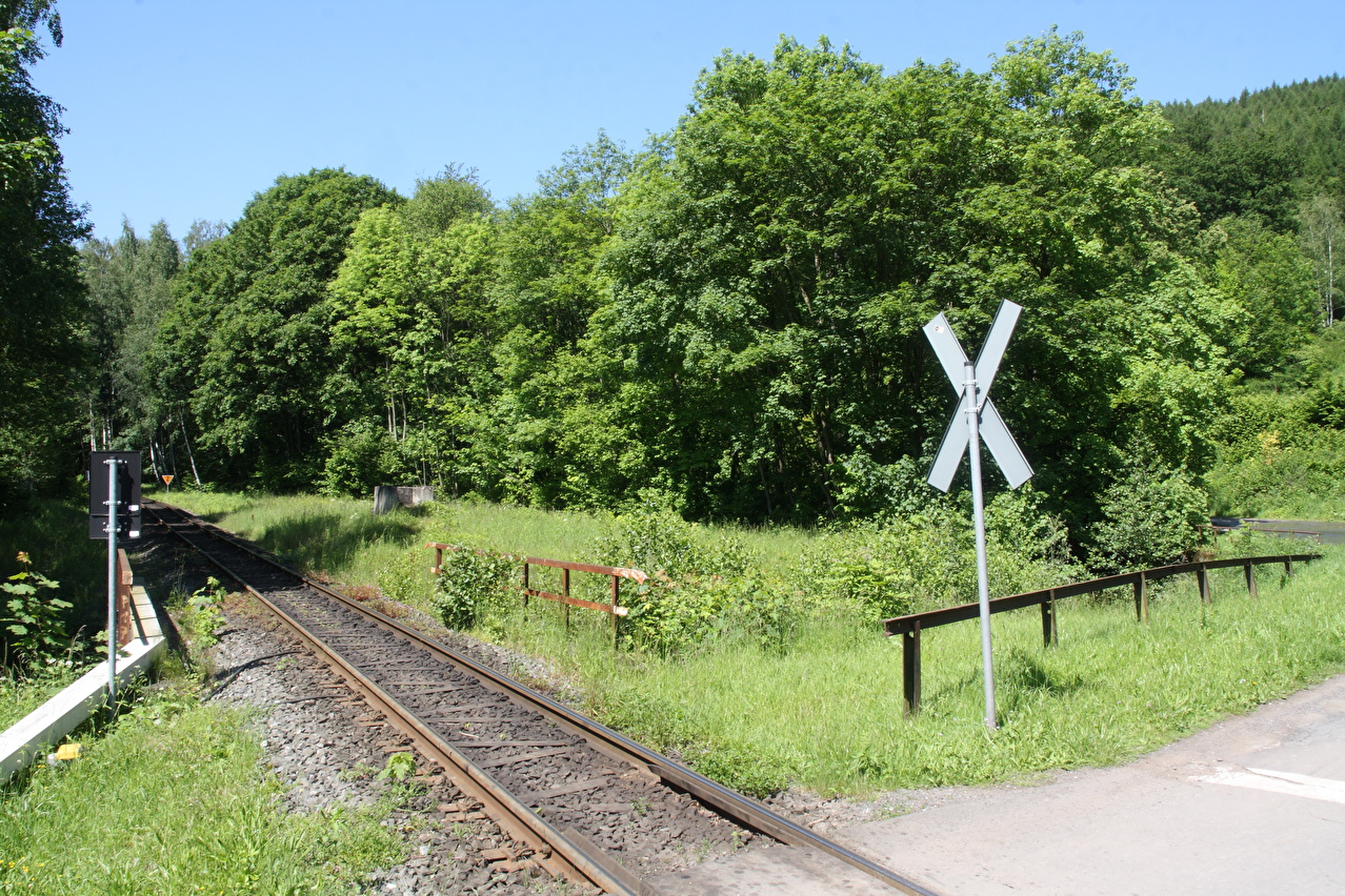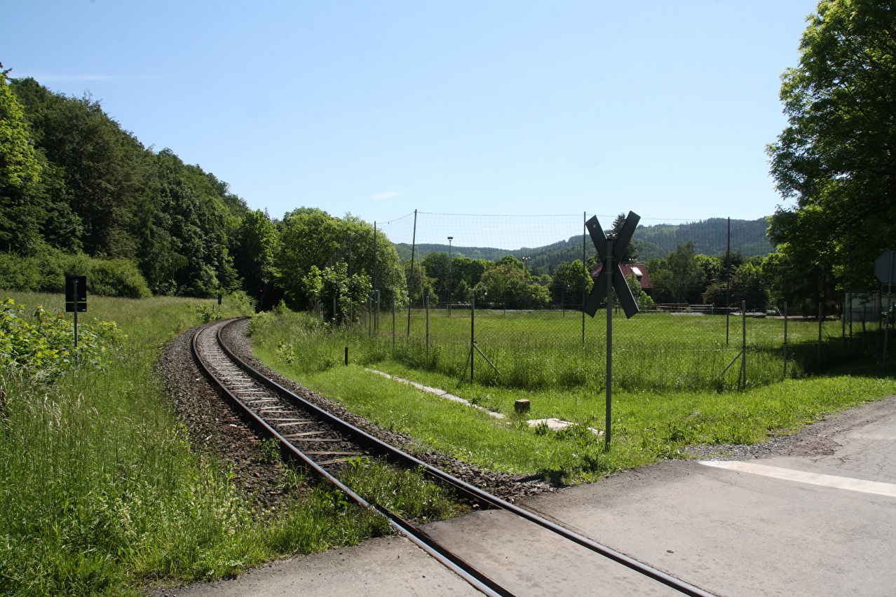 ein Dieseltriebwagen verlässt den Bahnhof Steinerne Renne ![]() 300 dpi JPEG |