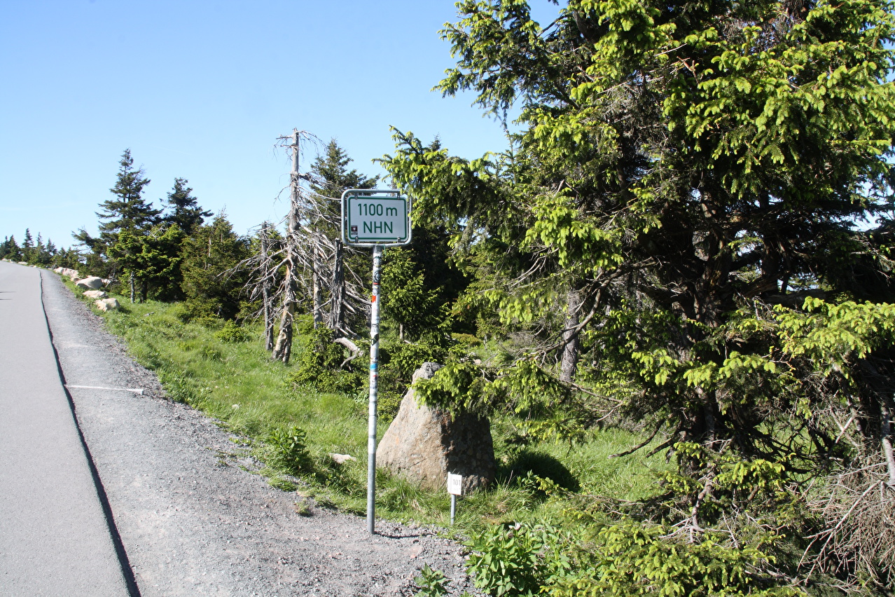 Beschreibung | Im Vergleich zu den letzten Jahren war es sehr spät für die erste Fahrt "ganz rauf". Gefahren wurde eine neue Route auf Waldwegen mit dem geländegängigen Fahrrad. Noch in Wernigerode wird die Straße Richtung Schierke verlassen und nach einem kurzen Asphaltabschnitt wechselt nicht nur der Fahrbahnbelag auf Schotter, sondern die Steigung zieht nun auch merklich an, ohne jedoch extreme Steigungen zu beinhalten. Die recht unübersichtliche Beschilderung entlang des Weges in Verbindung mit einer für diese Zwecke zu ungenauen Karte brachten einige zusätzliche Streckenkilometer und ca. 80 zusätzliche Höhenmeter. Wirklich ärgerlich war aber der Zeitverlust von gut einer Stunde. Wieder auf dem richtigen Weg wurde die Brockenstraße auf 900 m ü.NHN erreicht und von da an folgte die wohlbekannte Gipfelanfahrt mit bis zu knackigen 17 % Steigung und wie immer zu vielen Fußgängern auf der Brockenstraße. Die Abfahrt erfolgte auf dem Goetheweg Richtung Torfhaus. Aus Zeitgründen wurde zum Schluss ab knapp unterhalb 700 m ü.NHN die schnelle Abfahrt auf der B4 nach Bad Harzburg gewählt. Als Konsequenz aus dieser Tour wurden für den Harz Landkarten im Maßstab 1:50000 beschafft. |