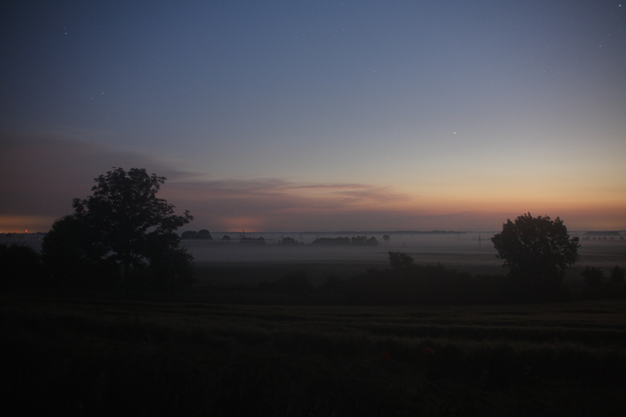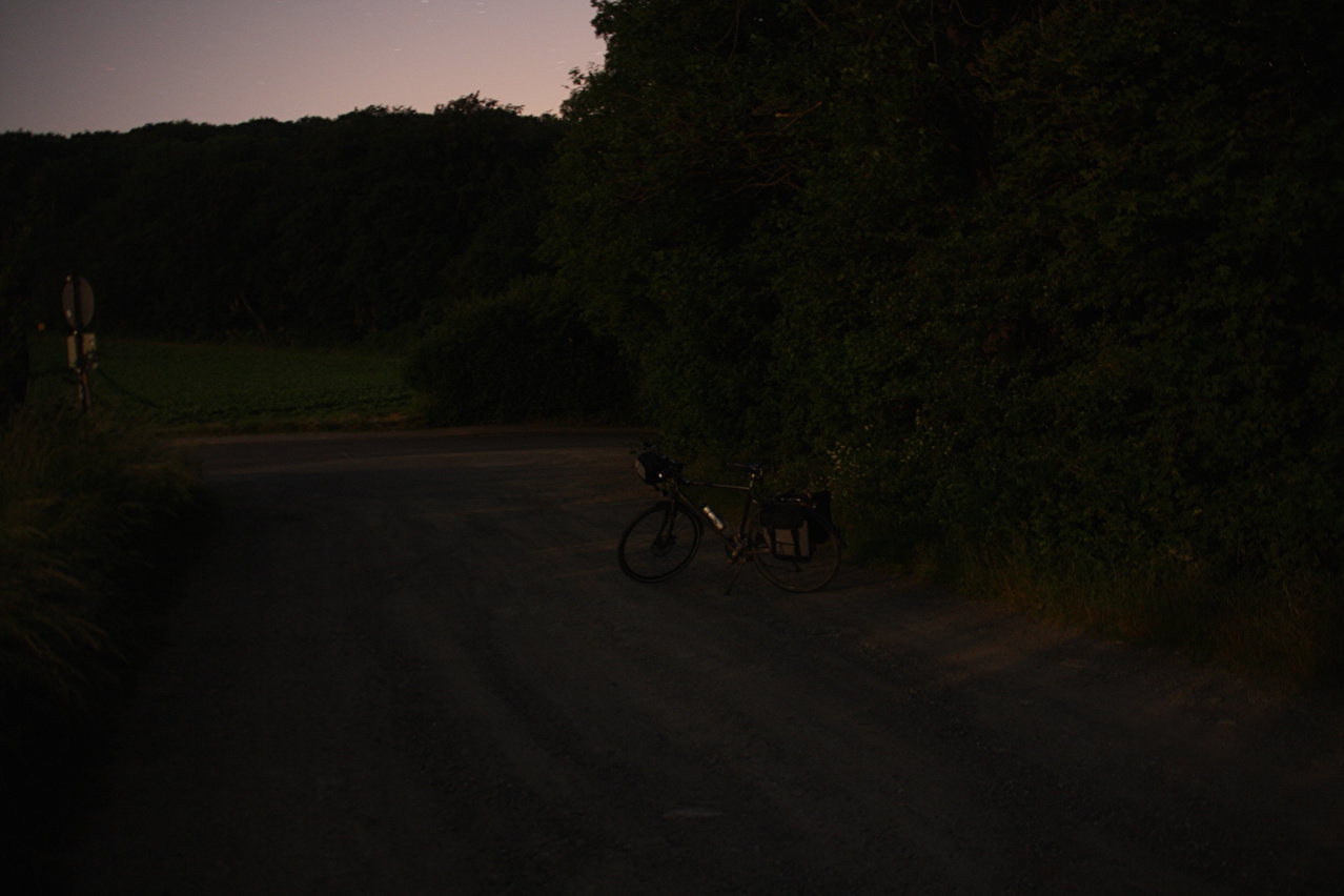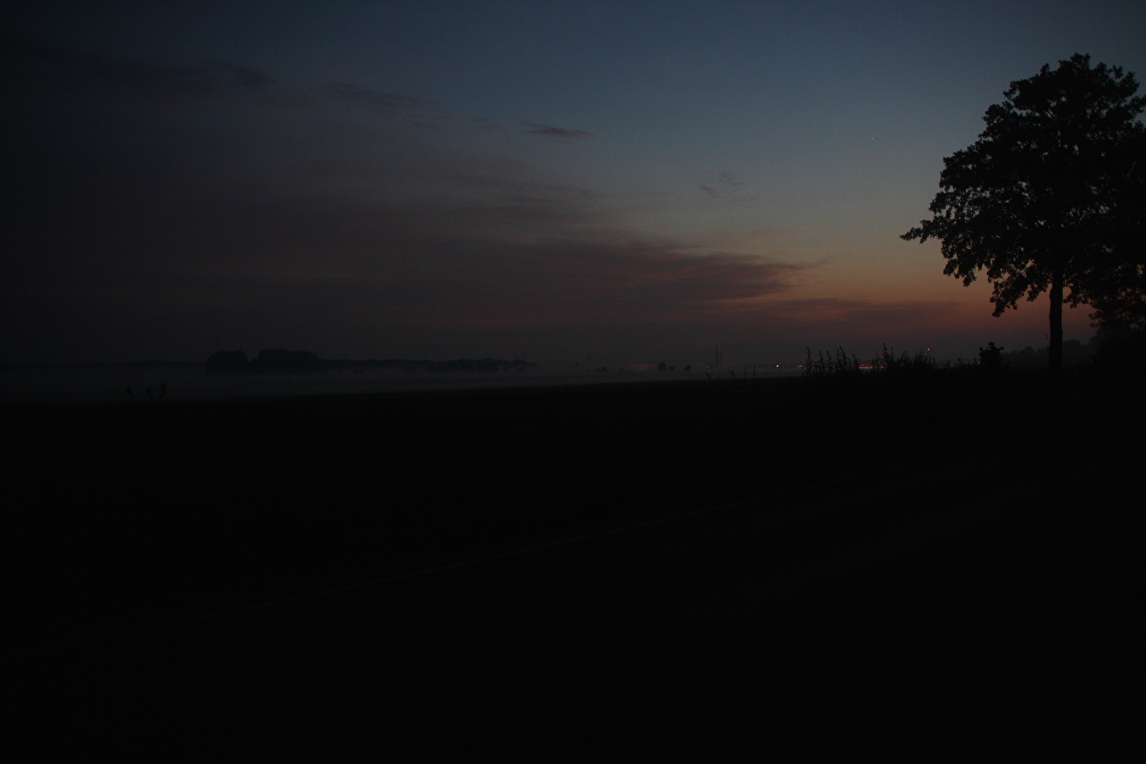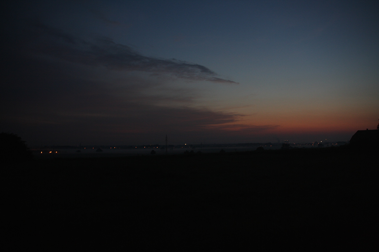 Beschreibung | An diesem Wochenende war es zu heiß für Tagestouren. Daher wurde, nachdem sich im Jahr zuvor keine Gelegenheit aufgedrängt hatte, wieder zu einer Nachtfahrt gestartet. Als Route wurde eine Runde "vor der Haustür" gewählt, die bei Tage gefahren bestens bekannt ist. Fahrtechnisch war diese Tour wenig anspruchsvoll, da die Fotopausen mit Stativauf- und abbau das Ganze sehr in die Länge zogen. An der Grenze zwischen Deutscher Mittelgebirgsschwelle und Norddeutscher Tiefebene, dessen Grenze im Tourverlauf mit dem Stemmer Berg überquert wurde, lag in der Nacht auch eine Wettergrenze. Südlich dieser Grenze war die Luft zwar spürbar feuchter als am Tage, dafür aber angenehm kühl. Nördlich dieser Grenze war die Luft etwas wärmer und vor allem so feucht, dass der Südrand der Norddeutschen Tiefebene mehr oder weniger eingenebelt war. Bei der Fotopause am Nordhang des Stemmer Berges beschlug das Objektiv der Kamera sofort. |