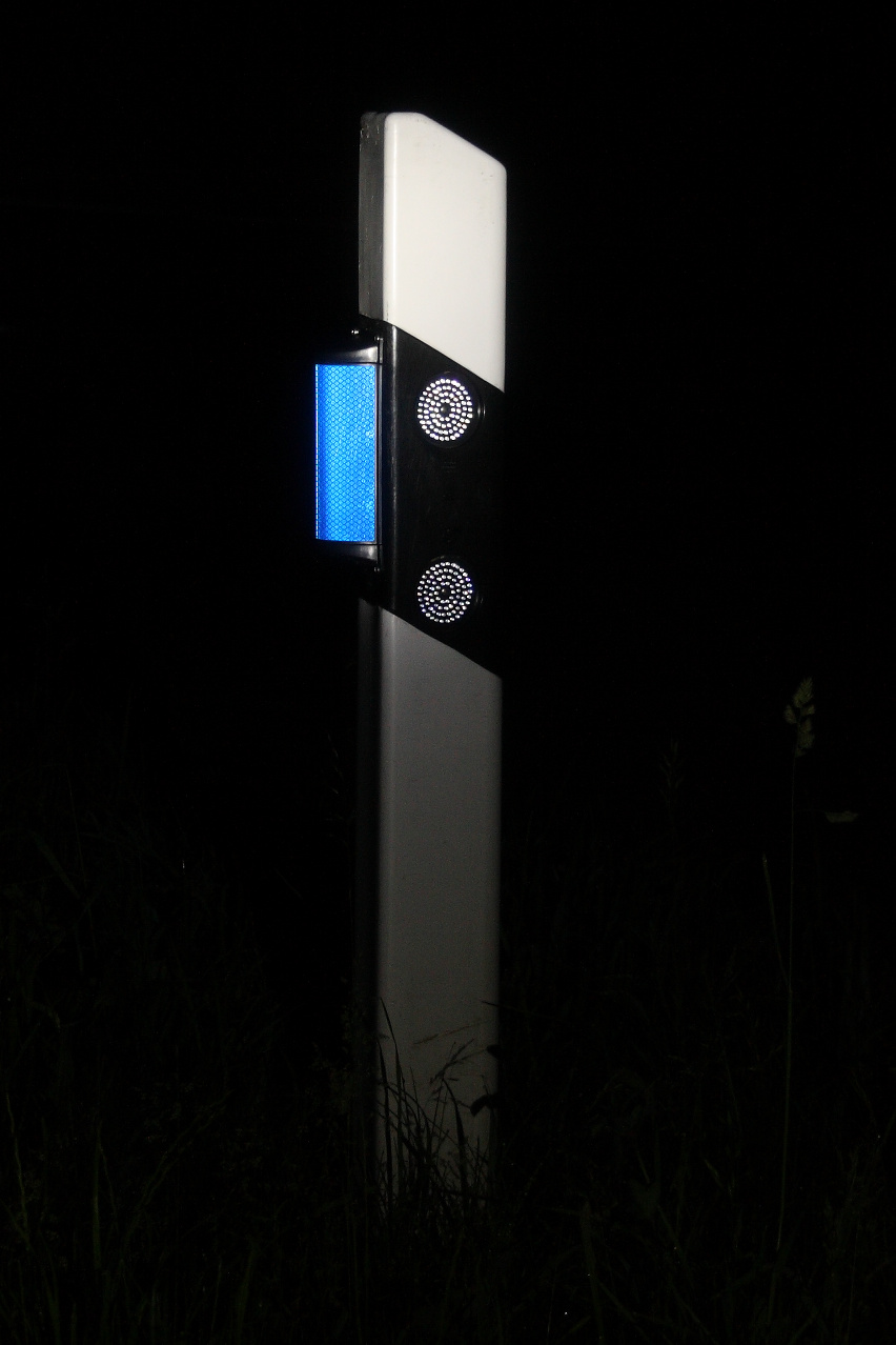 ein Leitpfosten mit Wildwarnreflektor ![]() 300 dpi JPEG |