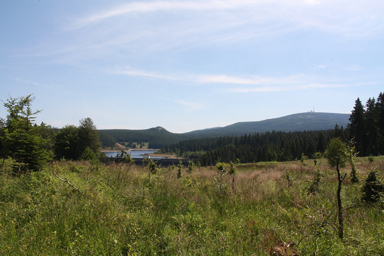 Blick von Luisenbank auf Eckerstausee, dahinter v. l. n. r.: Fohlenkopf und Brocken ![]() 300 dpi JPEG |