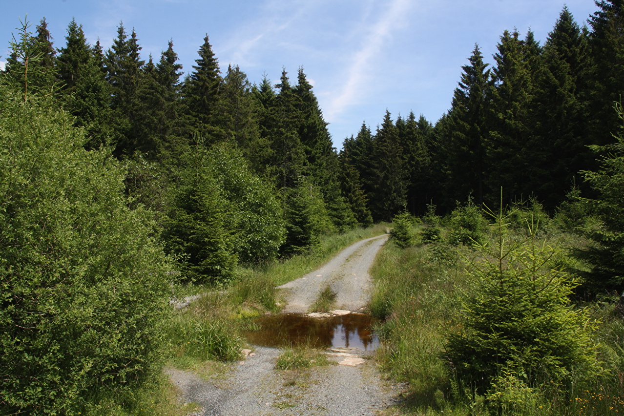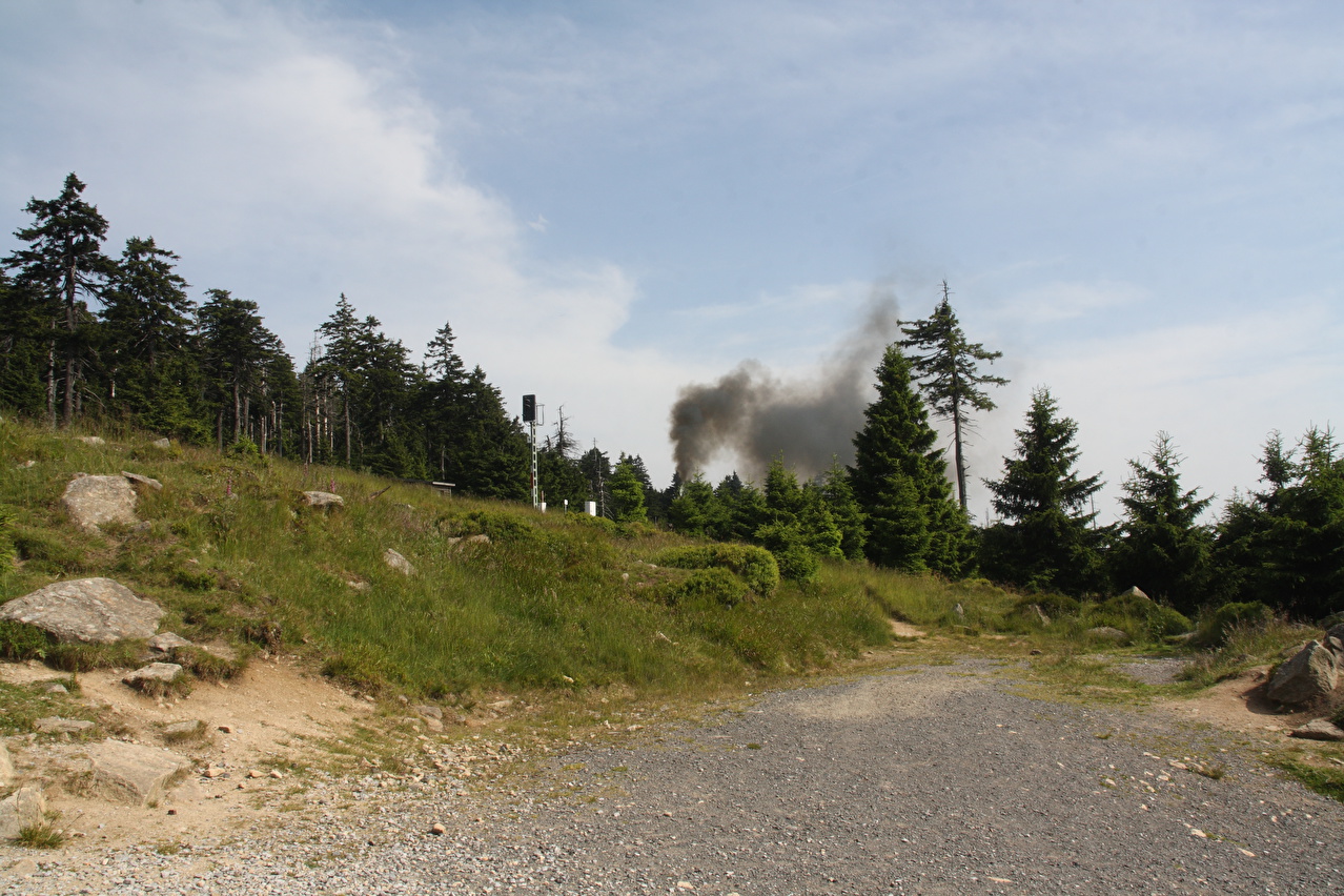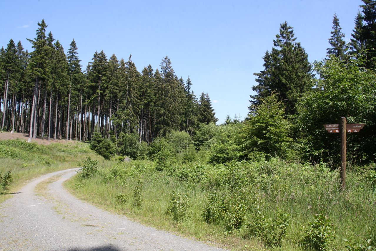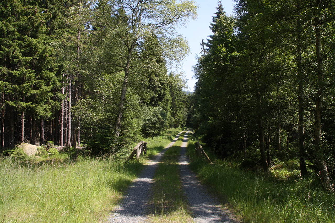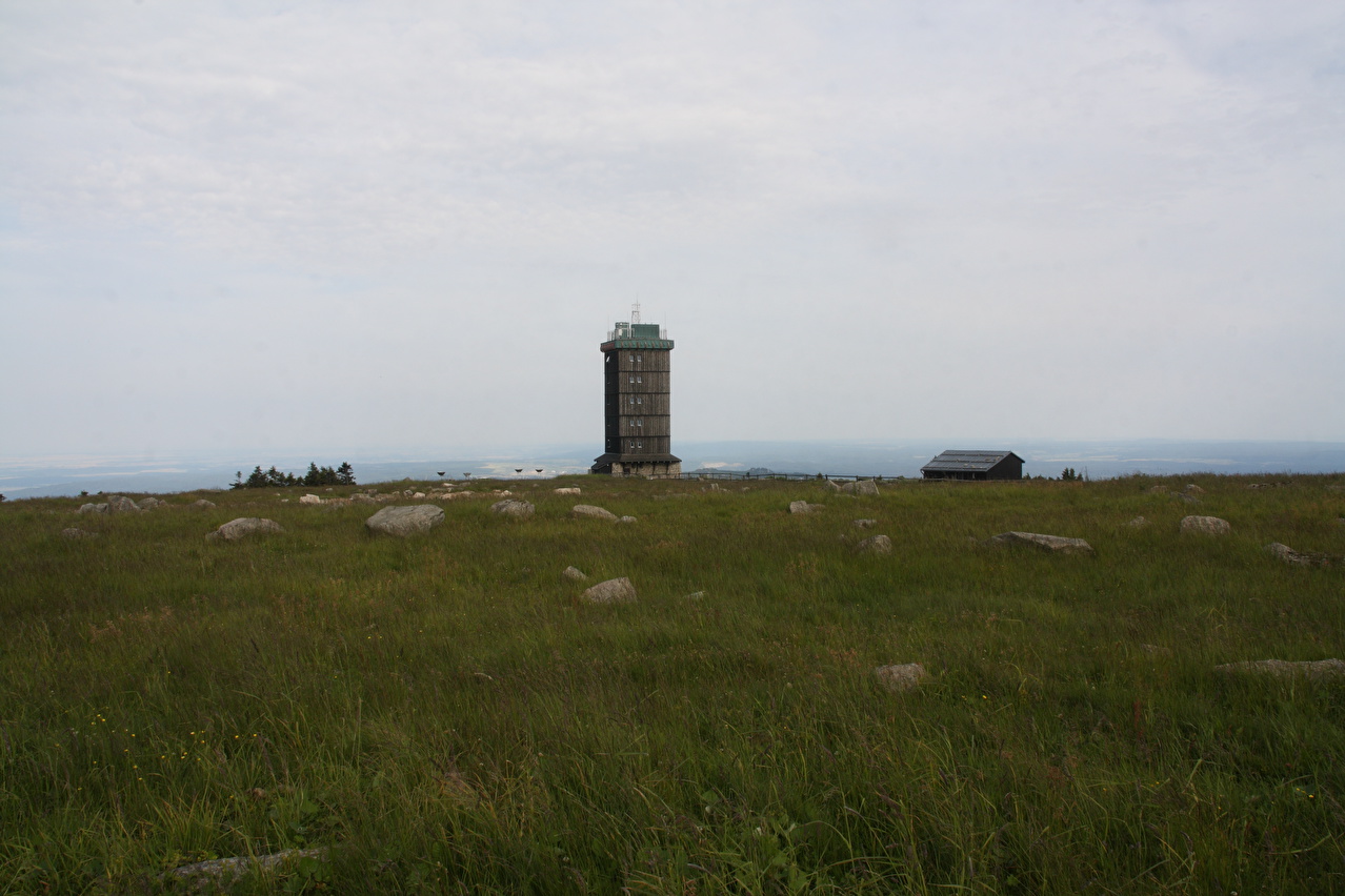 Beschreibung | Da für den Tag Temperaturen um +30 °C und bis zum späten Nachmittag nahezu ungestörter Sonnenschein vorhergesagt worden waren, war die logische Konsequenz, den hohen Temperaturen durch die Fahrt auf einen hohen Berg zu entgehen. Das klappte jedoch nur begrenzt, da erst oberhalb des Quitschenberges erträgliche Temperaturen herrschten. Wolken schoben sich auch erst im späteren Tagesverlauf kurz vor Erreichen des Brockengipfels vor die Sonne. Weiter unten stand die Hitze im Wald. Bei dieser Tour wichen Hin- und Rückweg vom Brocken nur zwischen Molkenhaus und der Auffahrt auf den Gotheweg östlich von Torfhaus voneinander ab. Aus Zeitgründen, da nur noch der letzte durchgehende Zug nach Hannover erreicht werden konnte, wurde für die Rückfahrt die streckenweise dem Kaiserweg folgende Route gewählt, da dort weniger Höhenmeter durch Gegensteigungen in der Abfahrt zu überwinden sind. Auf dem Brocken selbst, aber auch auf der Brockenstraße und dem Gotheweg war es ungewöhnlich leer, sodass endlich mal "ohne Menschen im Bild" Fotos von den Einrichtungen im Gipfelbereich geschossen werden konnten. Die extrem wenigen Fußgänger auf Brockenstraße und Gotheweg an diesem Tag sorgten für eine ungewöhnlich entspannte Abfahrt. |