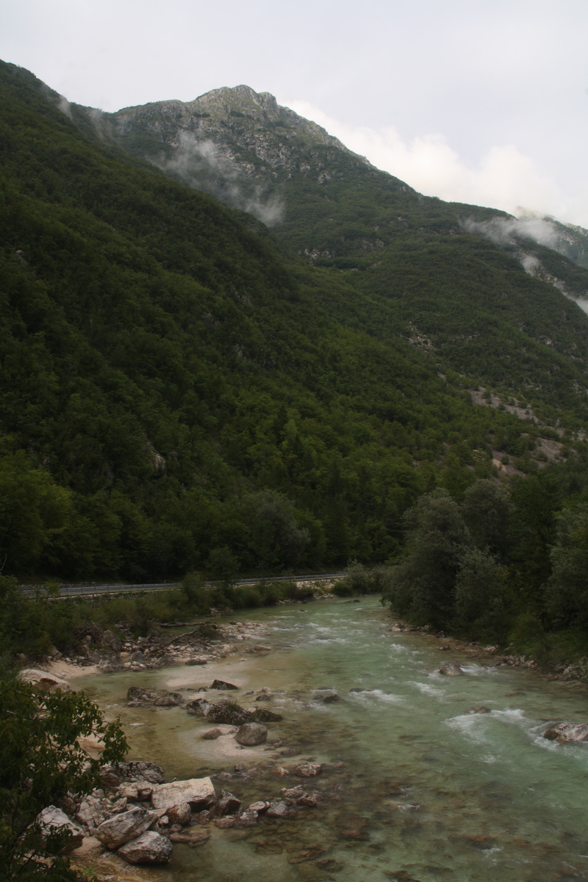die Soča, wo die Passstraße die Tallinie erreicht, Blick flussaufwärts … ![]() 300 dpi JPEG |