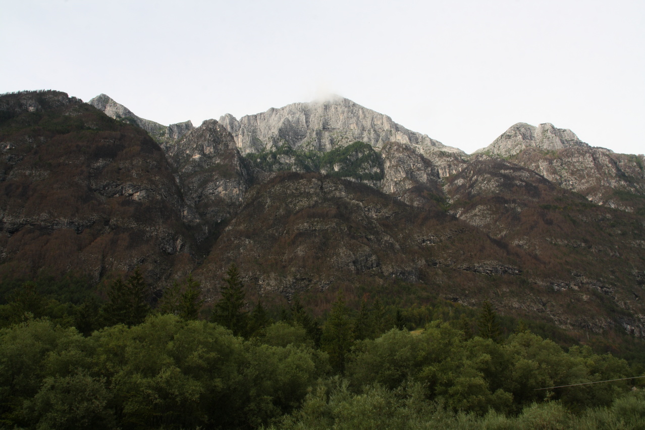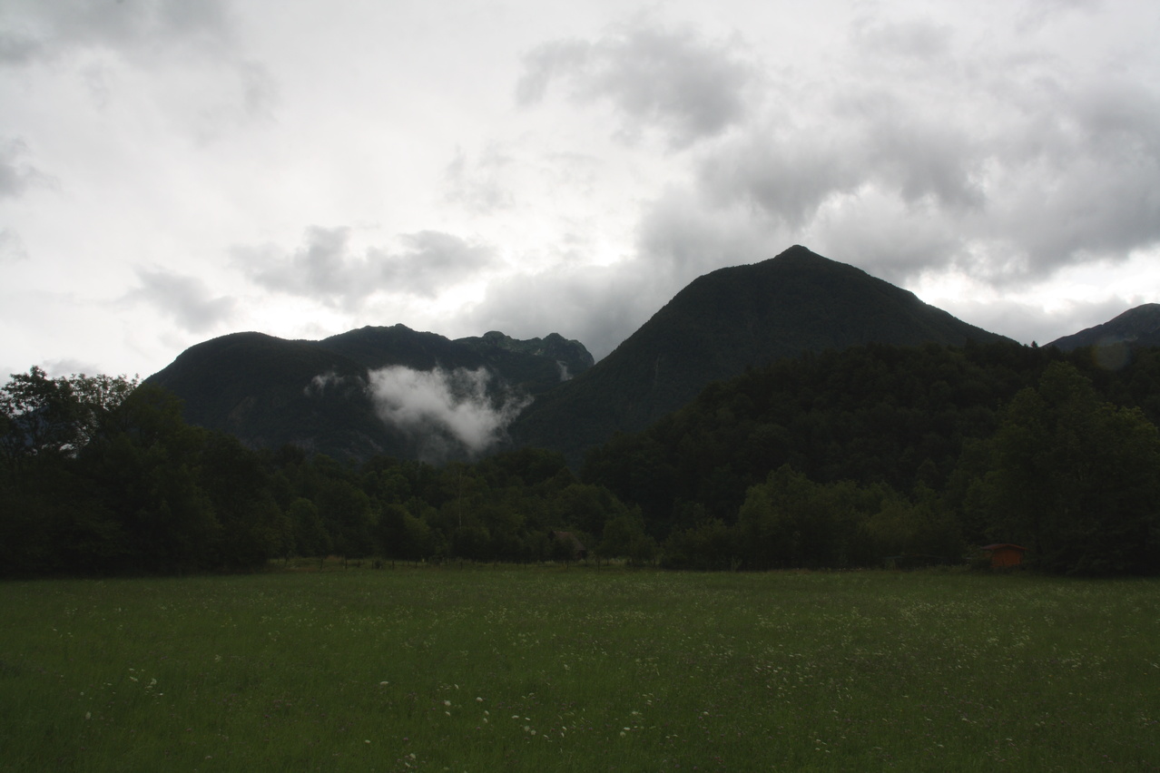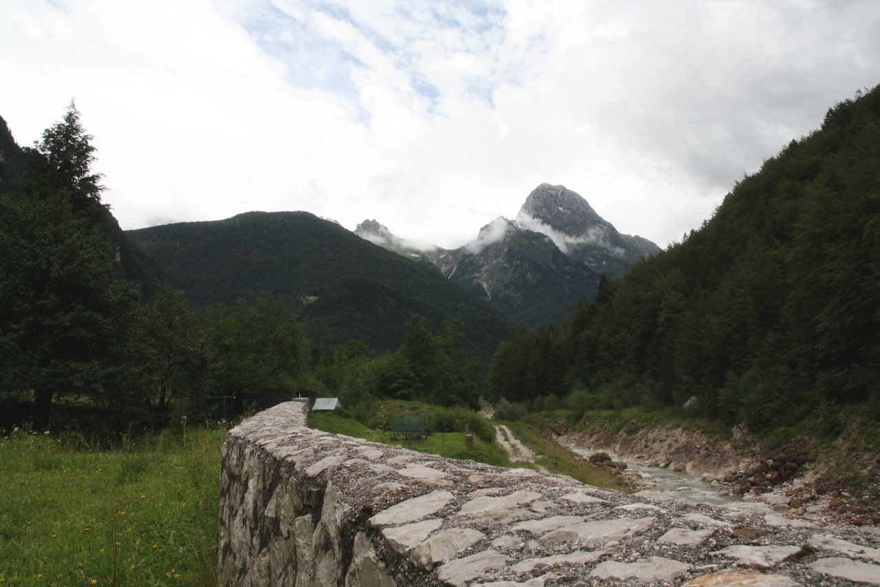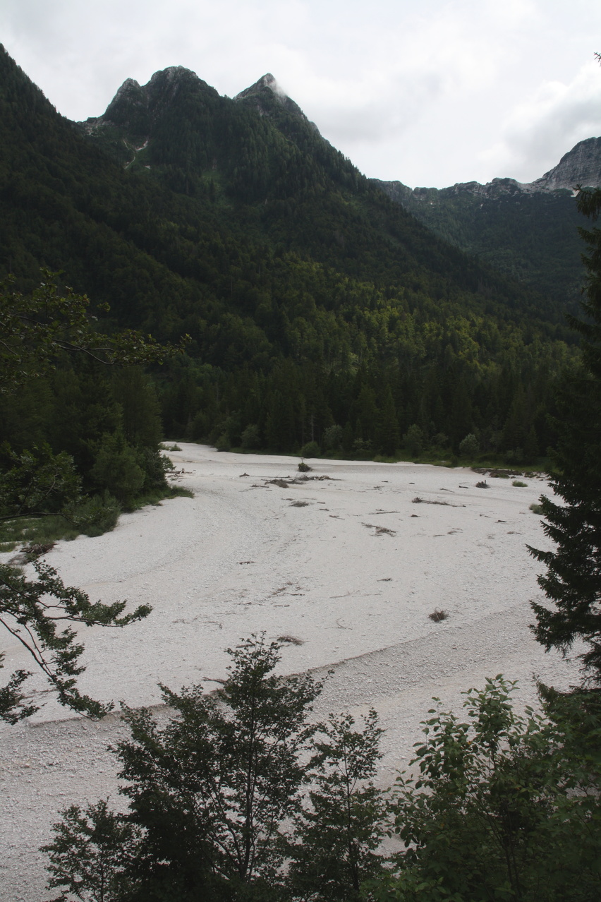 die Koritnica, Blick flussaufwärts, und der Mangrt von Log pod Mangrtom aus gesehen ![]() 300 dpi JPEG |