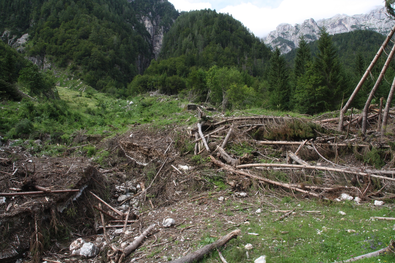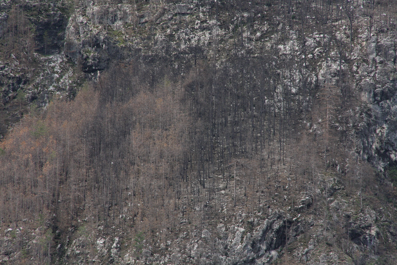 großflächig abgestorbener Bergwald oberhalb des Val Raccolana ![]() 300 dpi JPEG |