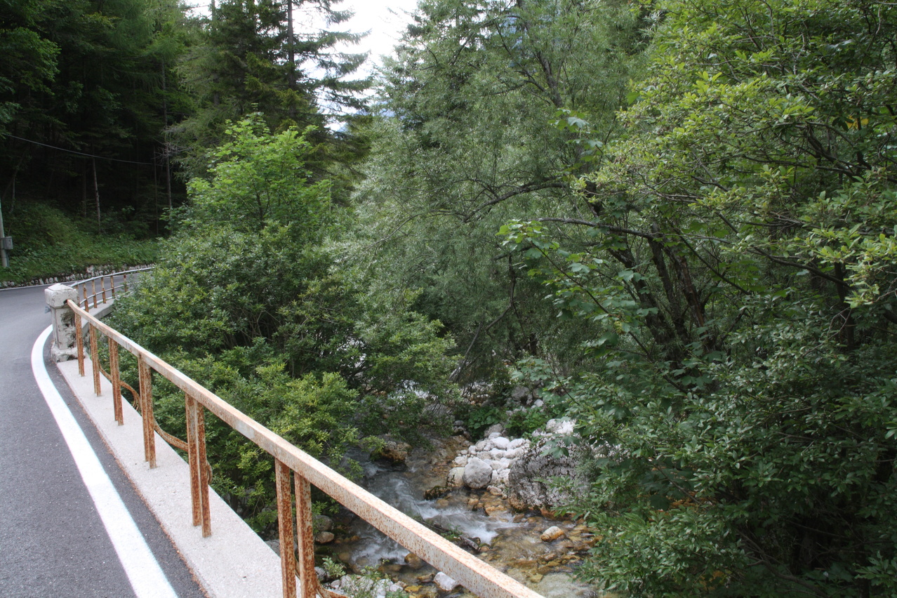 die Torrente Raccolana, wo die Passstraße die Tallinie erreicht, Blick flussaufwärts ![]() 300 dpi JPEG |