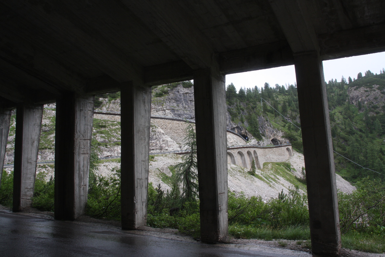 Blick auf Kehren der Südrampe im Val Cordevole ![]() 300 dpi JPEG |