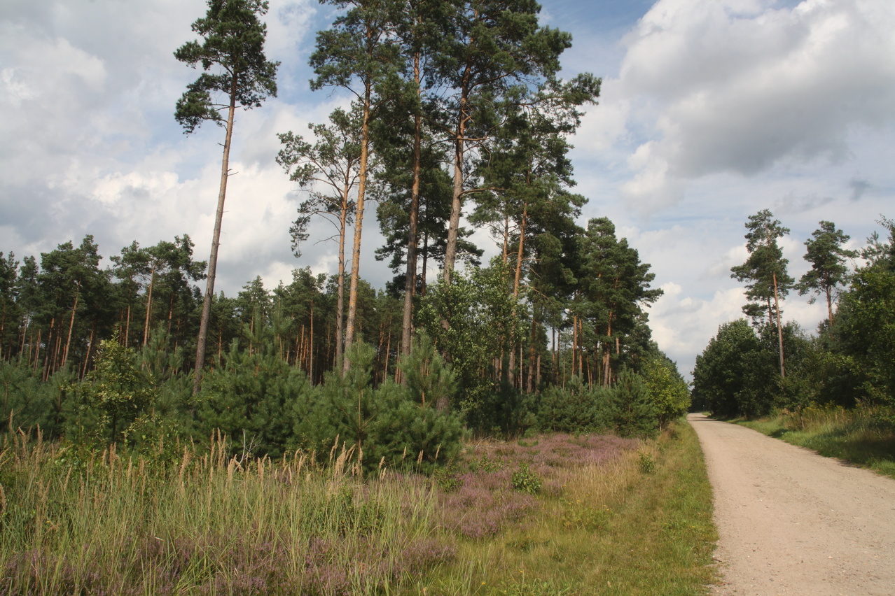 Beschreibung | Da diese Etappe nun als 2. Etappe der Zweitagestour gefahren wurde, wurde sie, abgesehen von der Fahrradfahrt von der Wohnung zum Hauptbahnhof Hannover, dort gestartet, wo am Vortag die 1. Etappe, abgesehen von der Fahrradfahrt vom Hauptbahnhof Hannover zur Wohnung, zu Ende gegangen war. Das Wetter war zunächst sehr sonning, nur der Südwestwind hatte fast Sturmstärke erreicht. Da auch diese Etappe mit Generalkurs Nordnordost gefahren wurde, störte der Wind kaum. Auch an diesem Tag wurde außerhalb der Ortschften überwiegend auf Feld- und Waldwegen, aber auch asphaltierten Wirtschaftswegen gefahren. Nordöstlich von Celle weist die Landschaft ein leicht welliges Profil auf. Diese Hinterlassenschaften der vorletzten Eiszeit brachten dann auch wenige Höhenmeter. Durch die Bodenwellen wirkt die Landschaft wenigstens etwas abwechslungsreicher als am Vortag, wo lediglich einige Brücken Wellen ins Streckenprofil brachten, und die Landschaft ansonsten platt wie'n Pfannkuchen ist. Der höhere Waldanteil auch mit Nadelbäumen wertet das Landschaftsbild ebenfalls auf. Zwischen Scharnhorst und Dalle wären beinahe Umkehren und Weiterfahrt auf einer anderen Route erforderlich geworden. Dort geht mitten im Wald die Schotterpiste recht abrupt in eine nur mit voll geländetauglichen Fahrzeugen befahrbare, mehrere Kilometer lange Sandpiste über. Immerhin verläuft neben dieser Sandpiste eine Art "Single Trail", eine schmale Spur im Gras, die mit etwas Schotter ausgestreut ist. Grasbüschel und insbesondere Disteln und Brennesseln machen die Fahrt darauf auch nicht gerade angenehm, aber das Fahrrad muss nicht geschoben werden. Wenigstens gab es an dem Tag keinen Gegenverkehr oder überholenden Verkehr auf diesem Streckenabschnitt. Bei Unterlüß kam ein erster Regenschauer nieder, der unter einem Baum abgewartet wurde. Die Überlegung, die Etappe mit der Fahrt zum Bahnhof Unterlüß zu beenden, wurde schnell wieder verworfen, da dort gerade ein Zug verpasst worden wäre, und die Etappe dann doch sehr kurz ausgefallen wäre. Bis kurz vor Hösseringen fielen immer wieder ein paar Tropfen Regen aus meist dichter Bewölkung, aber bei Hösseringen kam dann doch mehr Nass von oben, weshalb für die Weiterfahrt die Regenjacke übergezogen wurde. Kurz vor Suderburg riss es auf und die Sonne kam nochmal zum "gefühlten" Etappenende raus. Wirklich zu Ende war die Etappe erst mit dem Ende der Fahrradfahrt zwischen Hauptpbahnhof Hannover und Wohnung. |