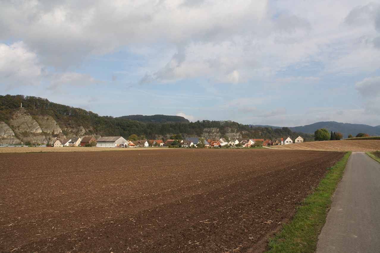 Blick von Südosten auf Dölme und die Felswände bei Steinmühle ![]() 300 dpi JPEG |