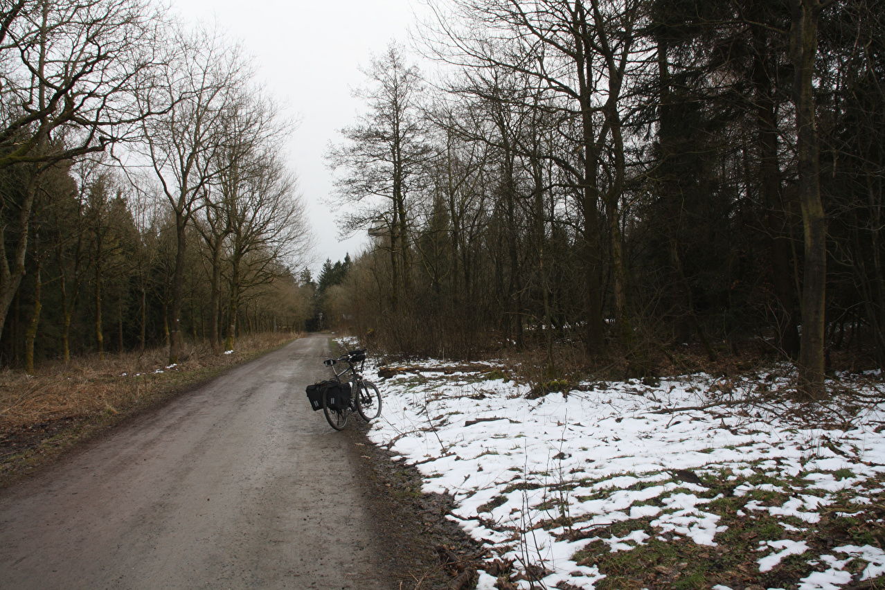 Beschreibung | Da für den kommenden Tag eine Harztour auf dem Plan stand, wurde an diesem Tag bei schönem, aber nicht warmem Wetter eine Deistertour zum Einrollen gefahren. Die teilweise etwas matschigen Wege waren mit dem geländegängigen Fahrrad beherrschbar. Ab etwa 350 m ü.NHN fanden sich Schneereste in geschützen Lagen. Kurz vor Erreichen der Hohen Warte entledigte sich eine Schneewolke, die sich fies von Nordosten heran geschlichen hatte, ihrer widerlichen weißen Fracht. Der Schnee blieb zwar nicht liegen, aber anfangs war der Schneefall so stark, dass eine Pause unter einer Fichte eingelegt wurde. Nach etwa 20 Minuten hatte der Schneefall soweit nachgelassen, dass die Fahrt forgesetzt werden konnte. Da mit dem Durchzug des Schneeschauers die Temperatur von ca. +10 °C auf ca. +3 °C gefallen war, fiel der Aufenthalt auf der Bröhn sehr kurz aus. Zum Abend hin kam die Sonne nochmal richtig raus. Da es im Calenberger Land auch nicht so kalt wie auf dem Deisterkamm war, wurde ab Weetzen wieder von der Bahn auf's Fahrrad gewechselt. |