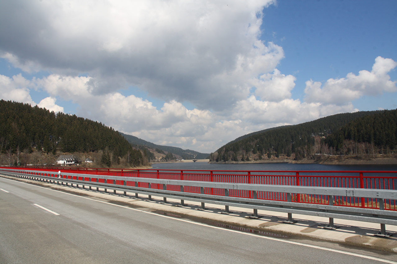 Okerstausee, Blick von der Weißwasserbrücke Richtung Hauptstaumauer ![]() 300 dpi JPEG |