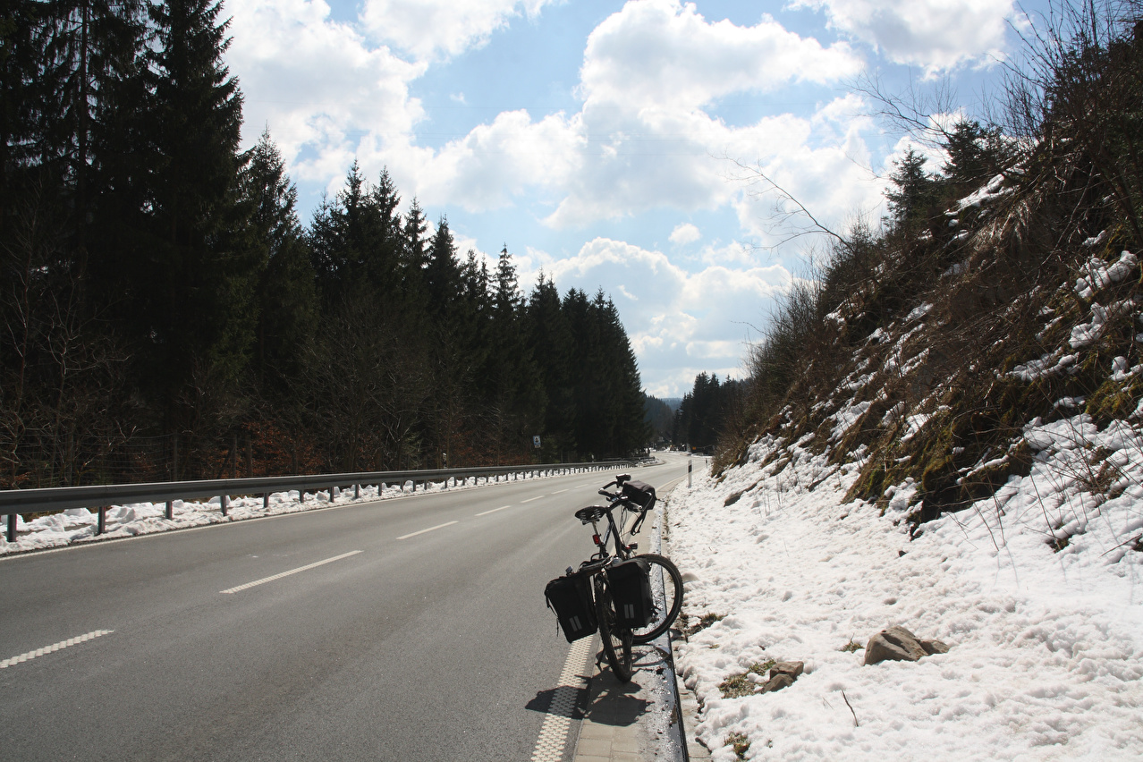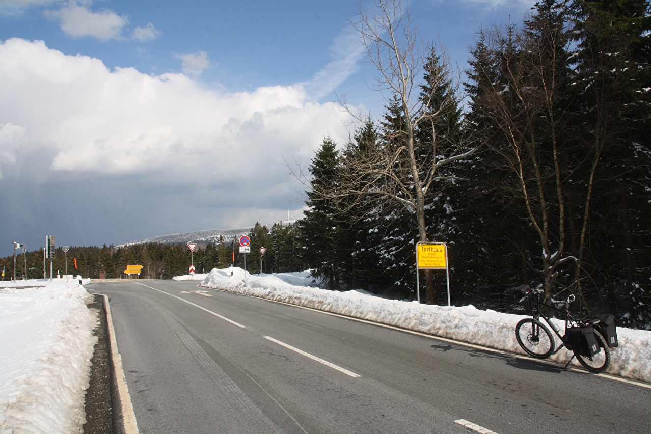 Beschreibung | "Grüne Weihnachten" und "Weiße Ostern" liegen voll im Trend! Deshalb wurde bei sonnigem, aber nicht gerade warmem Wetter die erste Harztour auf der Straße nach Torfhaus gefahren. Wegen des unklaren Straßenzustandes wurde dafür ausnahmweise das geländegängige Fahrrad gewählt, da die Stollenprofilreifen bei winterlichen Straßenverhältnissen eine bessere Traktion bieten als die Straßenreifen. Erste Winterrelikte zeigten sich schon im Okertal. Das Ausgleichsbecken der Okertalsperre war teilweise mit Eis bedeckt. Romkerhalle zeigte sich von Norden her recht winterlich. "Weiße Ostern" gab es dann ab Altenau aufwärts, wo die Landschft noch mit einer geschlossenen Schneedecke überzogen war. Die Straße war jedoch durchgängig frei, sodass von daher auch mit dem Trekkingrad hätte gefahren werden können. Während der Futterpause in Torfhaus fing es an zu schneien. Igitt, der gleiche Mist wie am Vortag! Da der Schnee auf der Straße nicht liegen blieb, konnte die Abfahrt nach Bad Harzburg sehr zügig gefahren werden. Dabei zeigte sich mal wieder die Überlegenheit der Scheibenbremsen in einer teilweise steilen Abfahrt. Für Fahrzeuge über 7,5 t Gesamtgewicht sind in der Abfahrt 20 km/h erlaubt. An der richtigen Stelle zog ein Reisebus mit über 40 km/h vorbei und dann kam das Vögelchen für den Busfahrer. Bad Harzburg wurde rechtzeitig erreicht, um den geplanten Zug nehmen zu können. Am Gleis stand aber an Stelle eines Zuges nur ein Mitarbeiter der Eisenbahngesellschaft und verkündete dort die "frohe Botschaft", dass dieser Zug ausfiele und Reisende mit Ziel Hannover doch über Braunschweig fahren sollten. Diese Juckelei über "Peine-Ost", die gewählt wurde, da kein Grund für den Zugausfall genannt worden war und somit nicht klar war, ob der nächste Zug fahren würde, kostete fast eine ganze Stunde Zeit. |