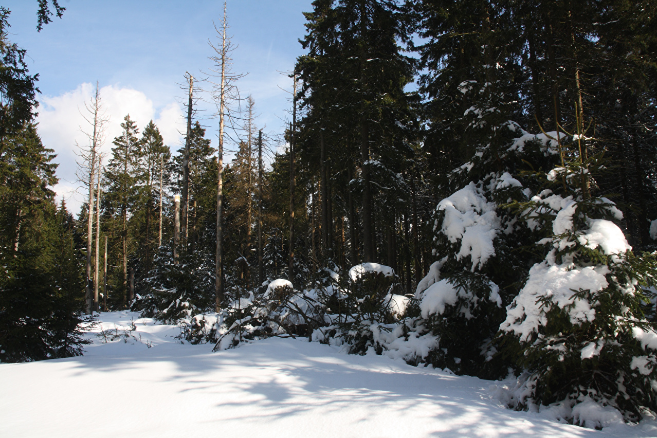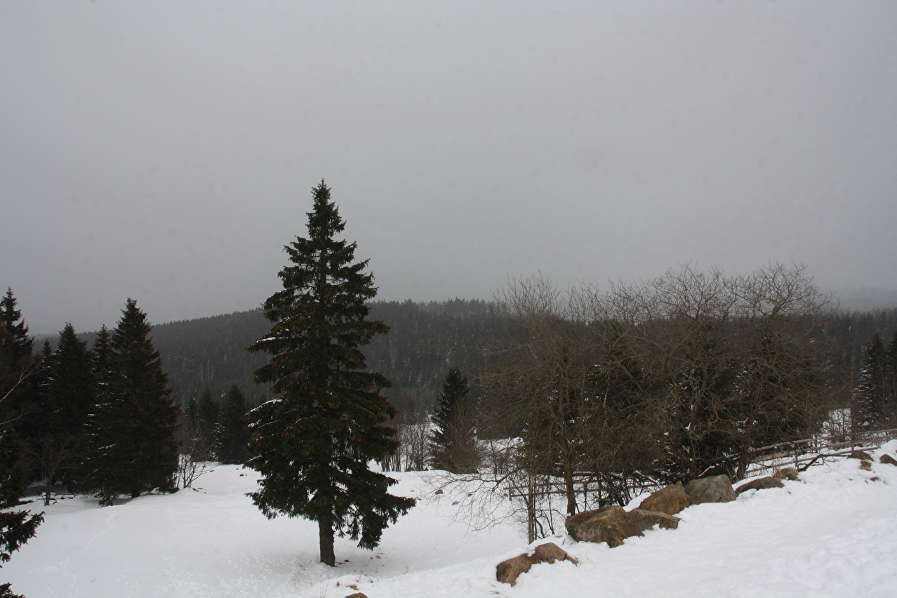 Zoom in den Winter, im Hintergrund der Bruchberg mit der Wolfswarte ![]() 300 dpi JPEG |