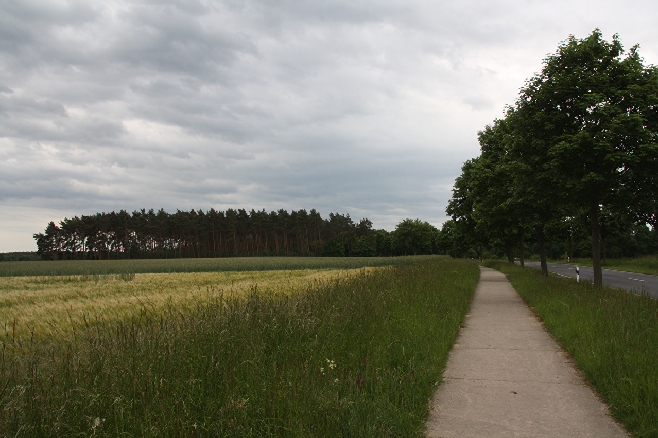 Beschreibung | Nach der Brockentour eine Woche zuvor bestand das übliche Problem. Weiter rauf geht es in Norddeutschland nicht. Da zudem der Aufzug eines Regengebietes bevor stand, wurde eine eher kurze Flachtour gefahren. Starkwind aus Süd erleichterte die Entscheidung mit Generalkurs Nord zu fahren. Dieser Wind begünstigte auch den hohen Schnitt von über 20 km/h. Am Nordrand der Region Hannover fielen erste Tropfen, aber mehr kam dann erst mal nicht von oben. Der nächste leichte Regenschauer fiel erst während der Wartezeit auf dem Bahnhof Schwarmstedt. Diese Tour zeigte auch, wie weit nach Norden sich die "Region Hannover" erstreckt. Von der Regionsgrenze sind es nur noch ca. 5 km bis nach Schwarmstedt. |
