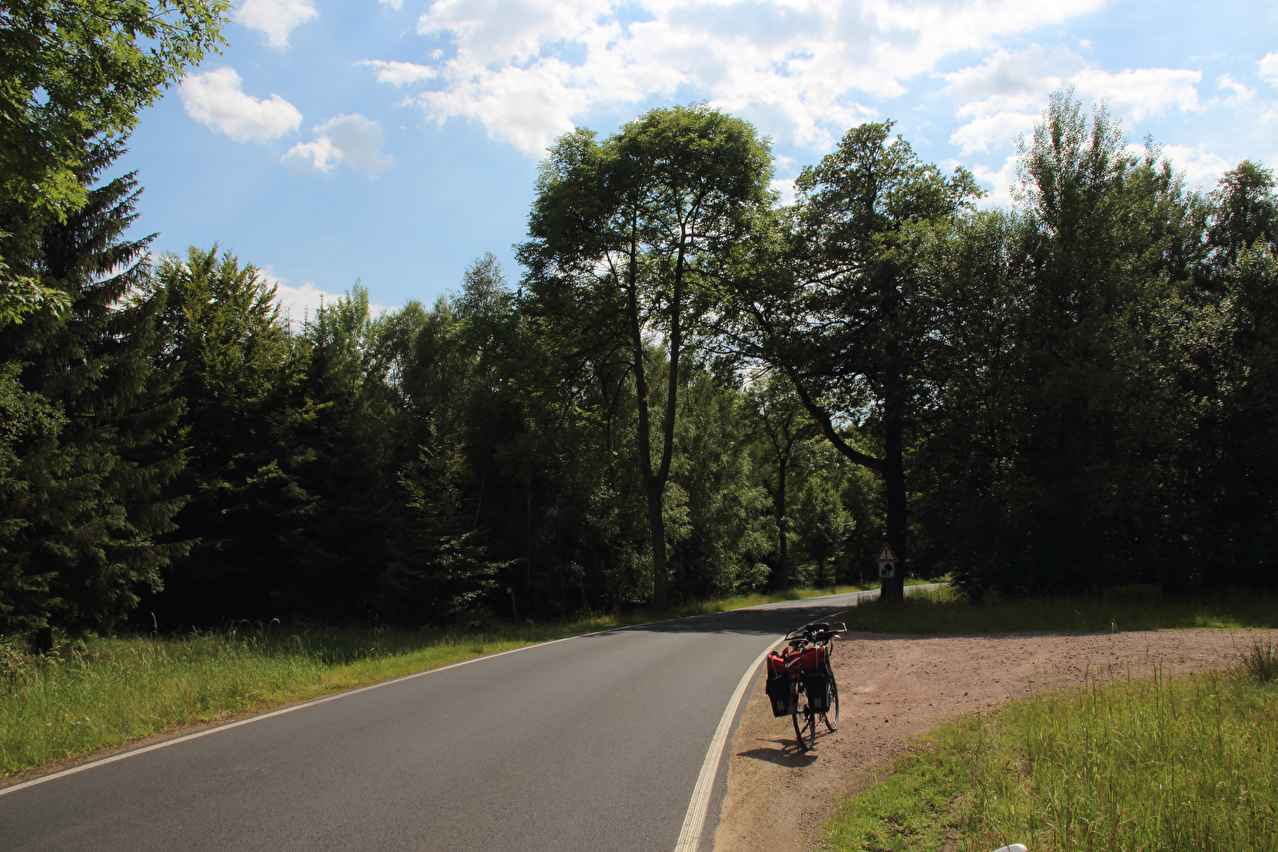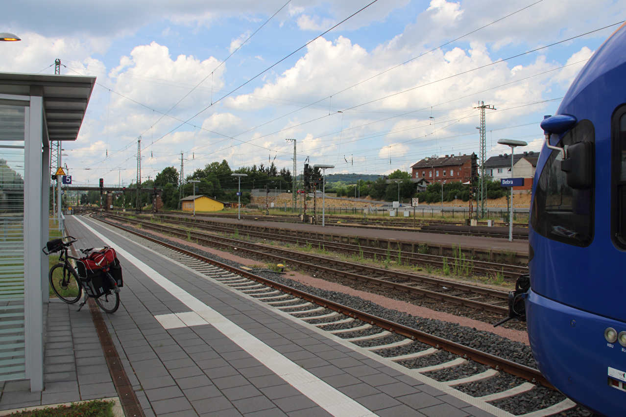 Beschreibung | Während bei der Fahrt zum Hauptbahnhof Hannover Hitze noch kein Thema war, lag über Bebra feuchtwarmer Mief. An dieser Luftzusammensetzung änderte sich auch im Verlauf der Etappe nichts. Die Sonne wurde öfters von Wolken verdeckt, wodurch die Temperatur noch keine extremen Wert erreichte. Einen langen Anstieg bietet die Route nicht. Die Fahrt von Bebra zur Höhe "Am Zollstock" im Seulingswald bildet den längsten zusammenhängenden Anstieg mit gerade einmal 278 Höhenmetern bergauf, wobei der Anstieg spürbar erst in Hönebach beginnt. Der Rest der Route ist durch ein welliges Profil geprägt und verläuft überwiegend durch Agrarsteppe. Der Radweg R15 verläuft von Bebra bis Hönebach durchgängig auf asphaltierten Wegen. Diese Etappe brachte einige Streckenwiederholungen mit sich. Die Streckenabschnitte von Bebra nach Ronshausen und von Friedewald nach Schenklensfeld waren am 06.05.2008 schon einmal gefahren worden. Da dieses Mal keine Neigung zur Fahrt auf Schotterpisten bestand, wurde anders als am 06.05.2008 in Ronshausen nicht nach Süden in den Seulingswald abgebogen. |