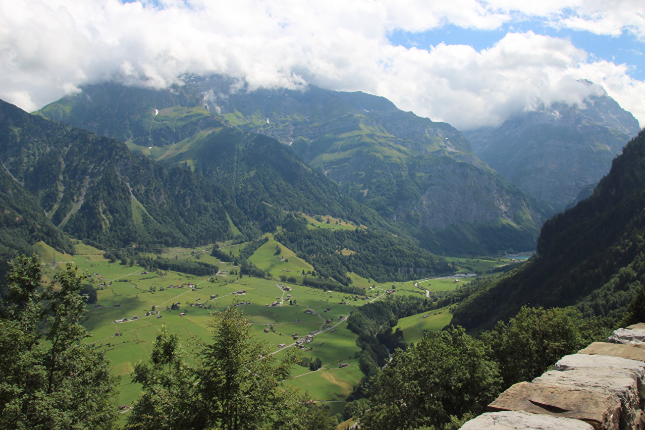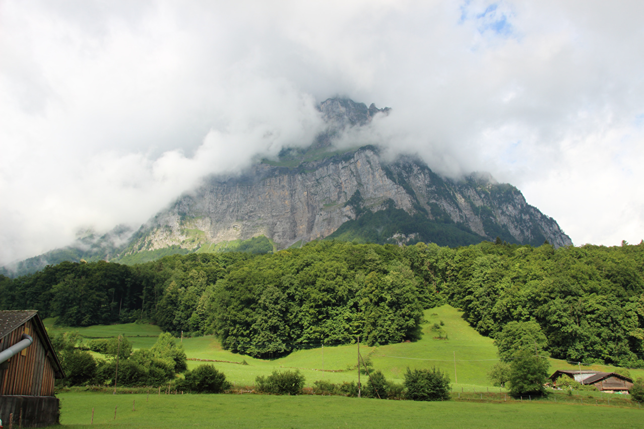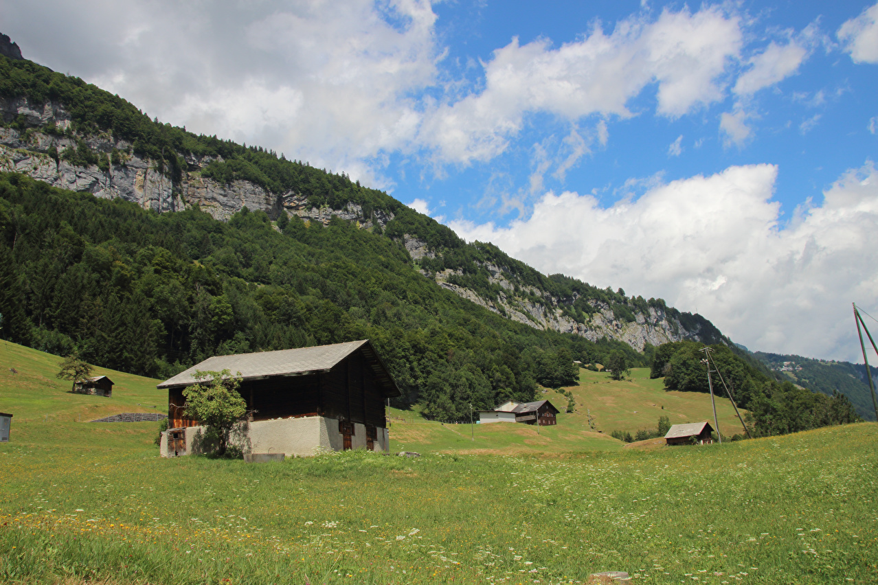 Siedlung Urnerboden, dahinter v. l. n. r.: Clariden (in Wolken), Klausenpass und Glatten ![]() 300 dpi JPEG |