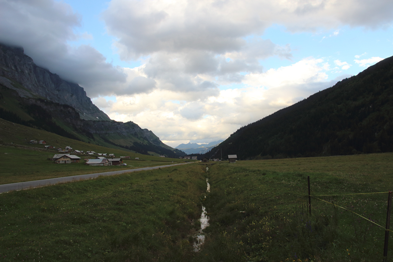 Urnerboden-Riedrütti, dahinter die Gemsfairen (in Wolken) ![]() 300 dpi JPEG |