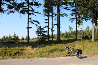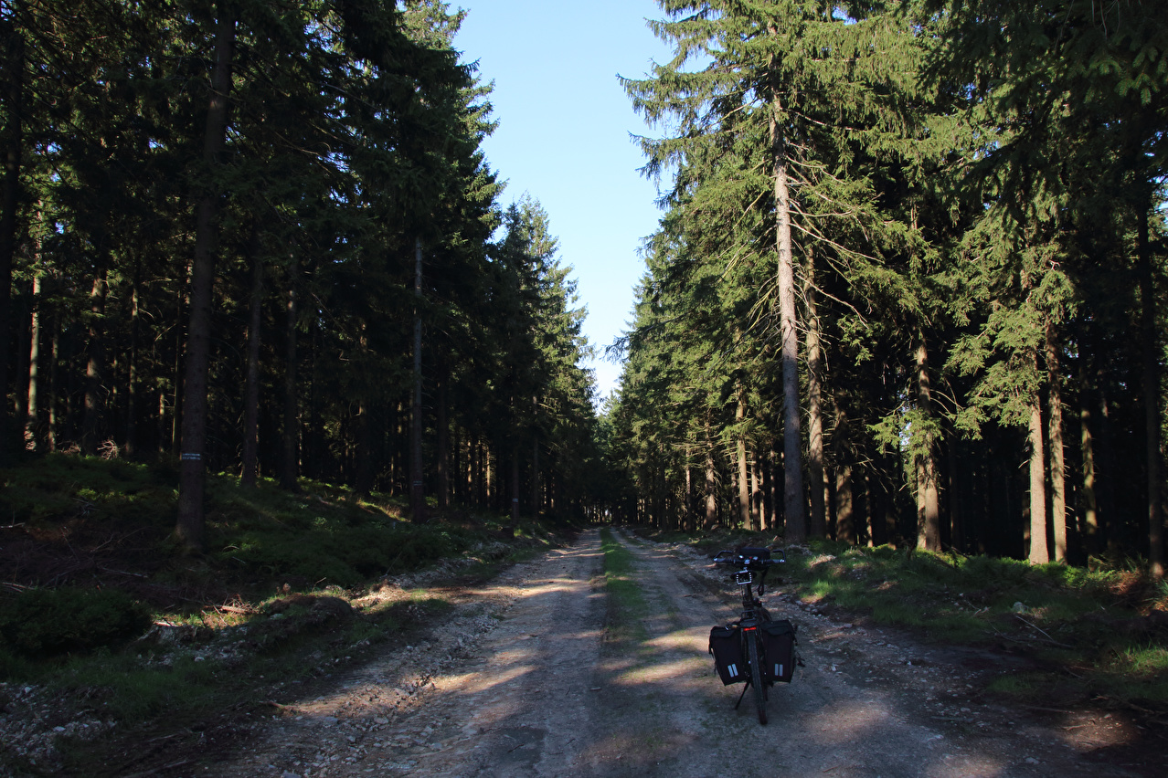 Beschreibung | Keine schroffen Gipfel, keine Fahrten oberhalb der montanen Baumgrenze, keine Serpentinenknäuel am Berg — "Nach den Alpen ist vor den Alpen" half da als Motivation gerade nicht so richtig weiter. Für den Rest des Jahres war aber nichts Höheres als der Harz erreichbar. Der eigentlich in der EDV übliche Begriff "Downgrade" bekam hier eine sehr wörtliche Bedeutung. Gar nicht mehr bergauf zu fahren war natürlich auch keine Lösung. Daher wurde eine zumindest in Teilen neue Route "durch den Wald", also auf dicken Reifen gefahren. Diese Route bietet neben einigen fiesen Steigungen im deutlich zweistelligen Prozentbereich sogar einige Serpentinen, die aber den Fahrspaß auf einer sich in zahllosen Serpentinen bergauf windenden Passstraße nicht ersetzen können. Auf dem Schalke wurde es eklig, weshalb es vom Gipfel auch kaum Fotos gibt. Trotz Fahrverbots standen dort drei Stinkekisten und der Gipfel war mit deren Insassen übervölkert. Für die Abfahrt von Auerhahn nach Goslar wurde die "Alte Harzstraße" gewählt, was bergab ein Fehler war. Diese "Straße" ist eine sehr holprige Schotterpiste, die eine entsprechend aufmerksame Fahrweise erfordert. |