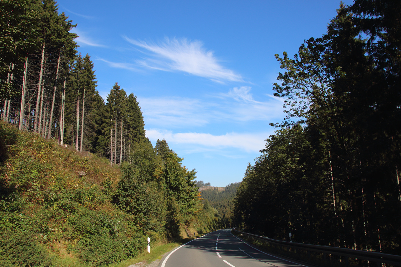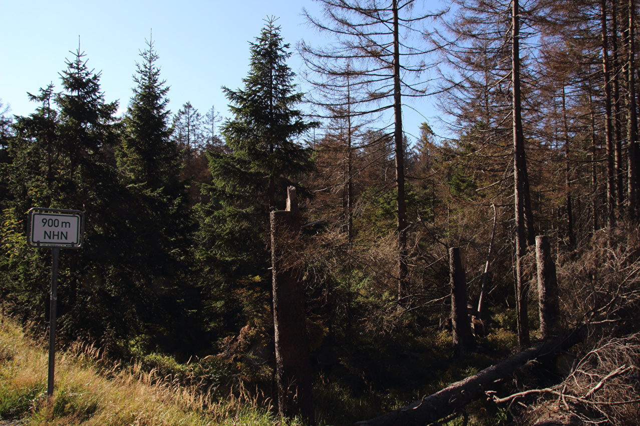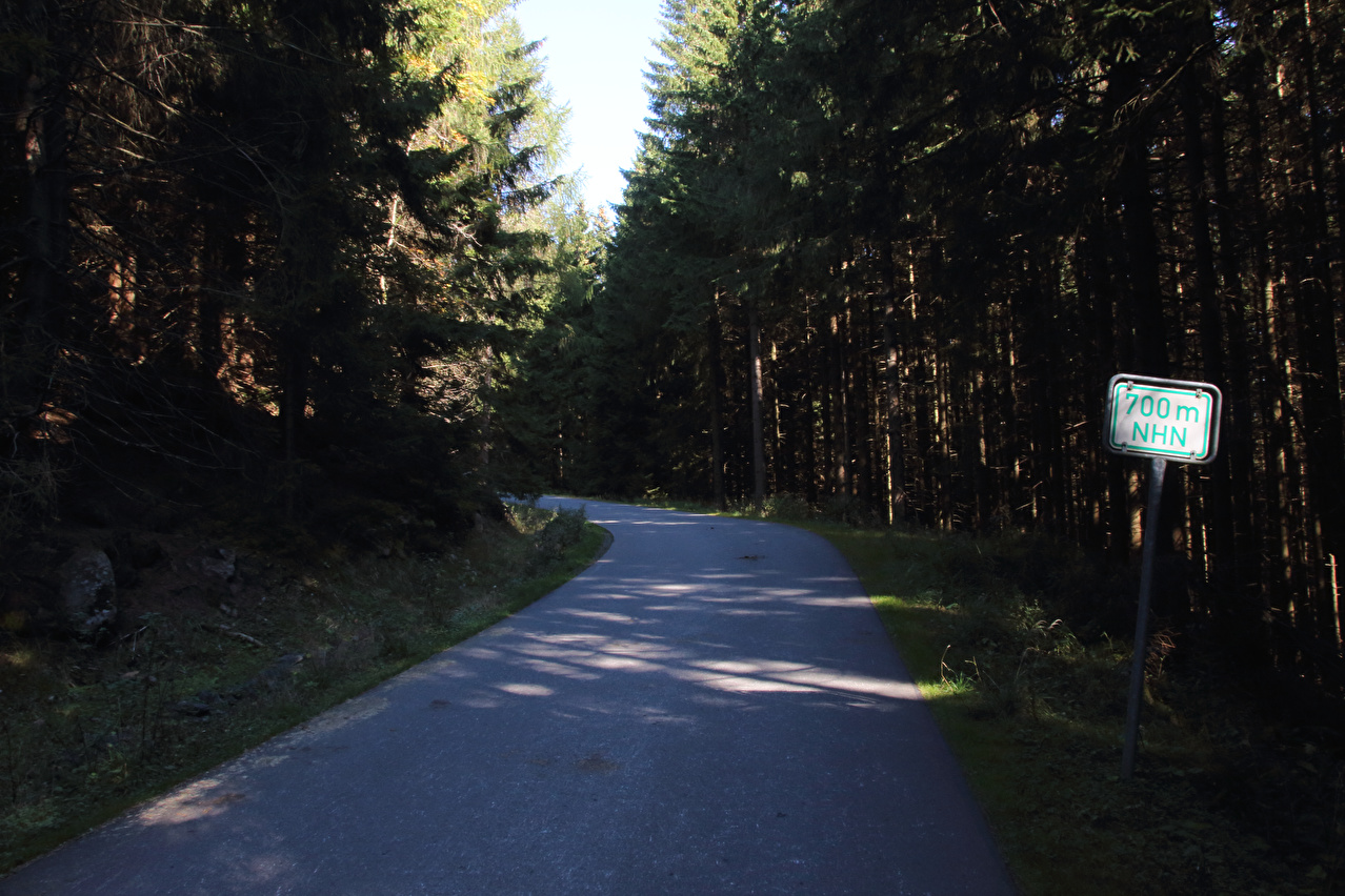 Beschreibung | Noch einmal in diesem Jahr bot sich die Gelegenheit, Höhen über 1000 Meter zu erreichen und zumindest kurzzeitig oberhalb der montanen Baumgrenze zu fahren. Bergauf wurde seit langem mal wieder auf der Straße über Schierke und dann zum ersten Mal auf der komplett sanierten Brockenstraße gefahren. Trotzdem wurde mit dem geländegängigen Fahrrad gefahren, da die Abfahrt über den Goetheweg mit dem Ziel Bad Harzburg geplant war. Die nun schon kurze Tageslänge machte sich in der Abfahrt deutlich bemerkbar. Daher wurde auf knapp unterhalb 700 m ü.NHN auf die B4 gewechselt und zügig nach Bad Harzburg abgefahren, um die Abfahrt noch vor Einbruch der Dunkelheit zu beenden. |