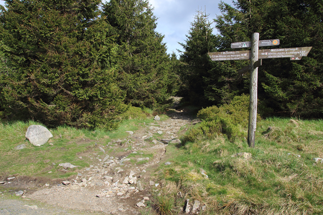Route | Oker (250) – Altenau (495) – Altenauer Hütte an der Wolfswarte (880) – Wolfswarte (918) – Clausthaler Flutgraben (820) – Torfhaus (801) – Bad Harzburg (239) |