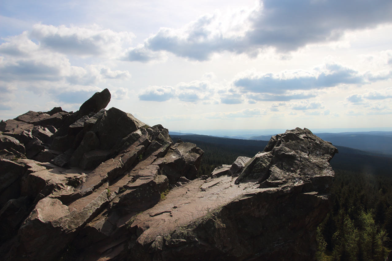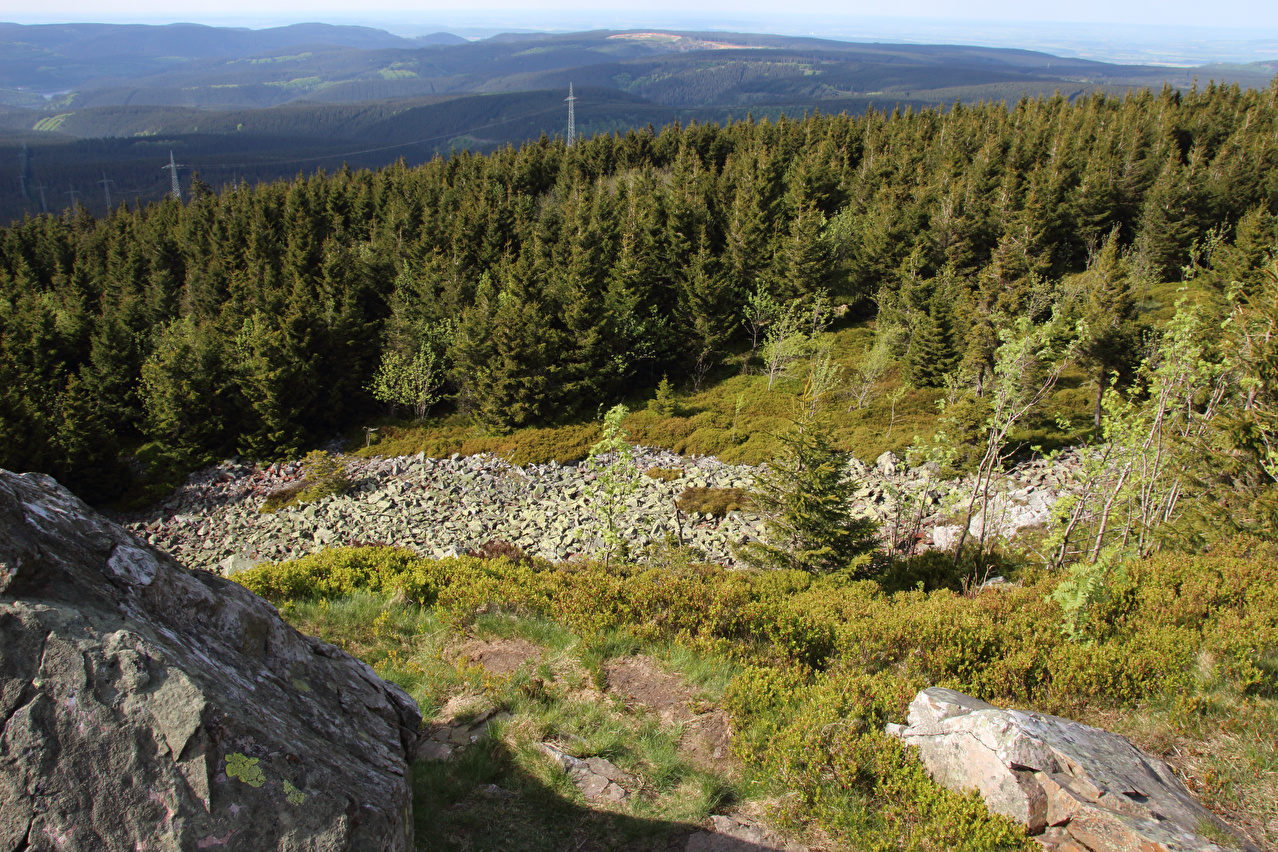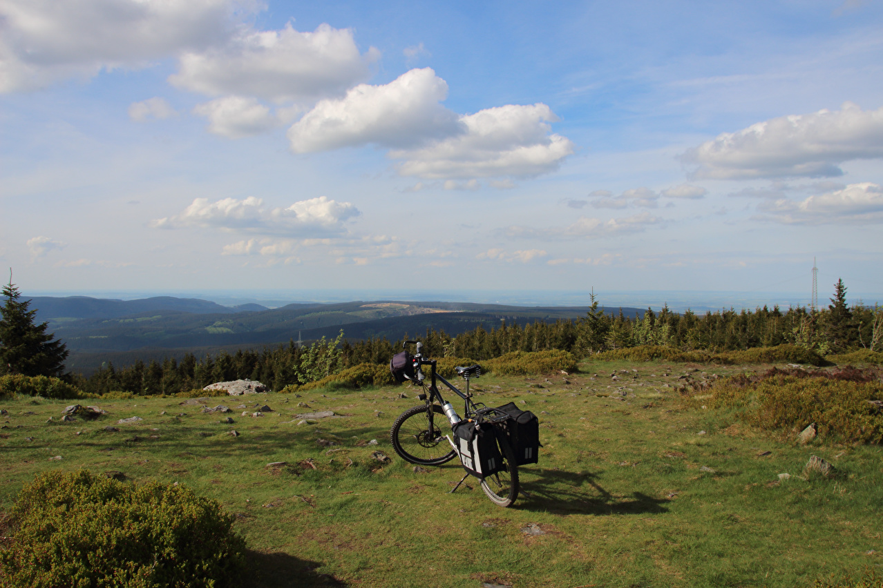 Beschreibung | Nach der zeitlich etwas unglücklich gewählten Tour am 29.08.2015 wurde diese Tour dieses Mal bei langer Tageslänge mit dem Ziel der Erreichung der Wolfswarte gefahren. Wie damals war auch dieses Mal mit Fahren an der Altenauer Hütte Schluss. Der Rest bis zur Wolfswarte musste geschoben werden, was an dem Tag auch einige Mountainbiker machten. Die Wolfswarte bietet einen weiten Blick ins Land, nur nach Osten versperrt Wald die Weitsicht. Die Felsformation auf der Wolfswarte taugt sicherlich auch als Filmkulisse. Die Felsen sind auf der Oberseite teilweise spiegelglatt, was auf den Fotos nur bedingt rüber kommt. An dem Tag setzten die Fichten im Harz riesige Mengen Pollen frei, was zu den "Rauchschwaden" führte. Der Weg nach Torfhaus ist noch schlechter als der Weg von der Altenauer Hütte aus. Zudem ergoss sich auf dem Weg ein Bach, wodurch Fahren unmöglich wurde und der Weg komplett bis zum Clausthaler Flutgraben geschoben werden musste. Dieser Weg scheidet für zukünftige Touren definitiv aus! Da sich die Tour durch die langen Schiebepassagen erheblich in die Länge gezogen hatte, wurde von Torfhaus die schnelle Abfahrt auf der B4 nach Bad Harzburg gewählt. |
