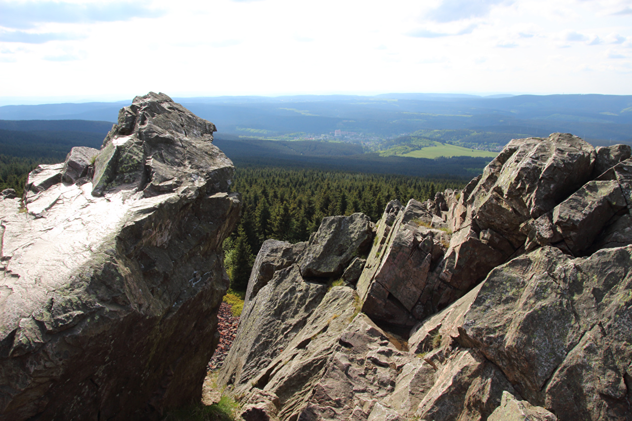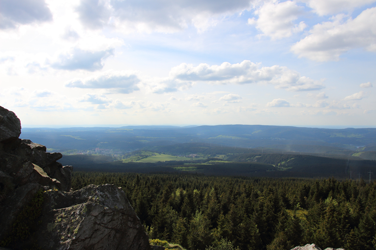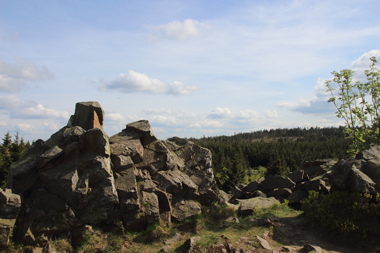 Beschreibung | Nach der zeitlich etwas unglücklich gewählten Tour am 29.08.2015 wurde diese Tour dieses Mal bei langer Tageslänge mit dem Ziel der Erreichung der Wolfswarte gefahren. Wie damals war auch dieses Mal mit Fahren an der Altenauer Hütte Schluss. Der Rest bis zur Wolfswarte musste geschoben werden, was an dem Tag auch einige Mountainbiker machten. Die Wolfswarte bietet einen weiten Blick ins Land, nur nach Osten versperrt Wald die Weitsicht. Die Felsformation auf der Wolfswarte taugt sicherlich auch als Filmkulisse. Die Felsen sind auf der Oberseite teilweise spiegelglatt, was auf den Fotos nur bedingt rüber kommt. An dem Tag setzten die Fichten im Harz riesige Mengen Pollen frei, was zu den "Rauchschwaden" führte. Der Weg nach Torfhaus ist noch schlechter als der Weg von der Altenauer Hütte aus. Zudem ergoss sich auf dem Weg ein Bach, wodurch Fahren unmöglich wurde und der Weg komplett bis zum Clausthaler Flutgraben geschoben werden musste. Dieser Weg scheidet für zukünftige Touren definitiv aus! Da sich die Tour durch die langen Schiebepassagen erheblich in die Länge gezogen hatte, wurde von Torfhaus die schnelle Abfahrt auf der B4 nach Bad Harzburg gewählt. |