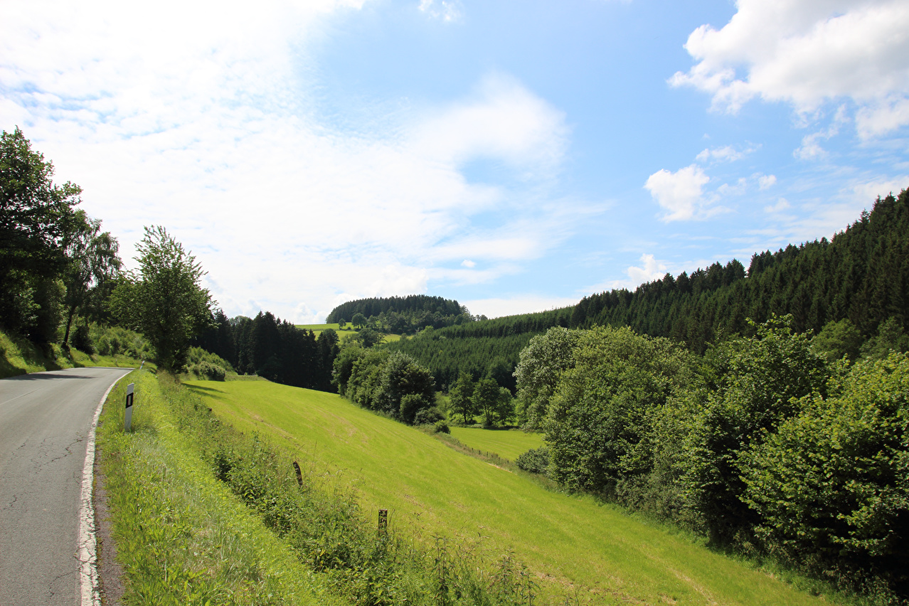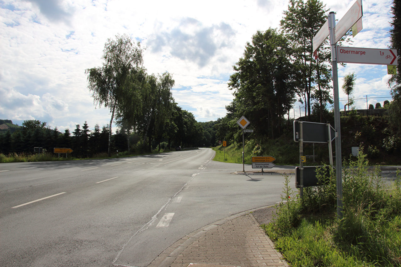 Kreuzung am Südrand von Cobbenrode, Blick nach Süden, im Hintergrund der Schneiderkopf ![]() 300 dpi JPEG |