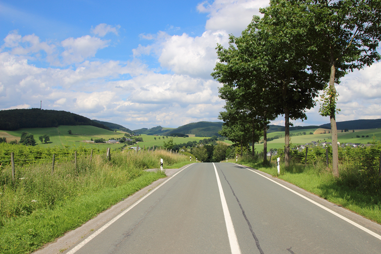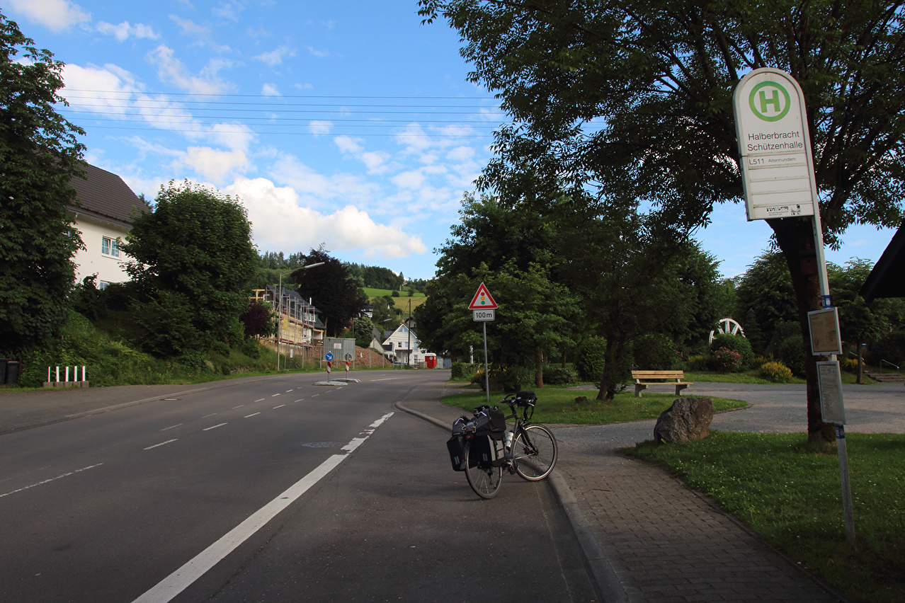 Route | Hannover, Anfahrt zum Hauptbahnhof – Bahnfahrt: Hannover Hbf. – Altenbeken – Warburg – Meschede – Meschede (260) – Hennesee (323) – Herhagen (340) – Landenbeck (370) – namenloser Pass (448) – Kirchilpe (400) – Nierentrop (370) – namenloser Pass / K20 (387) – Dorlar (340) – namenloser Pass / K20 (391) – Menkhausen (330) – namenloser Pass / K20 (410) – Niederlandenbeck (415) – namenloser Pass / K20 (445) – Henninghausen (429) – Cobbenrode (399) – Schwartmecke (467) – Oedingen (334) – Oberelspe (301) – Halberbracht (431) – Meggen (265) – Altenhundem (280) |