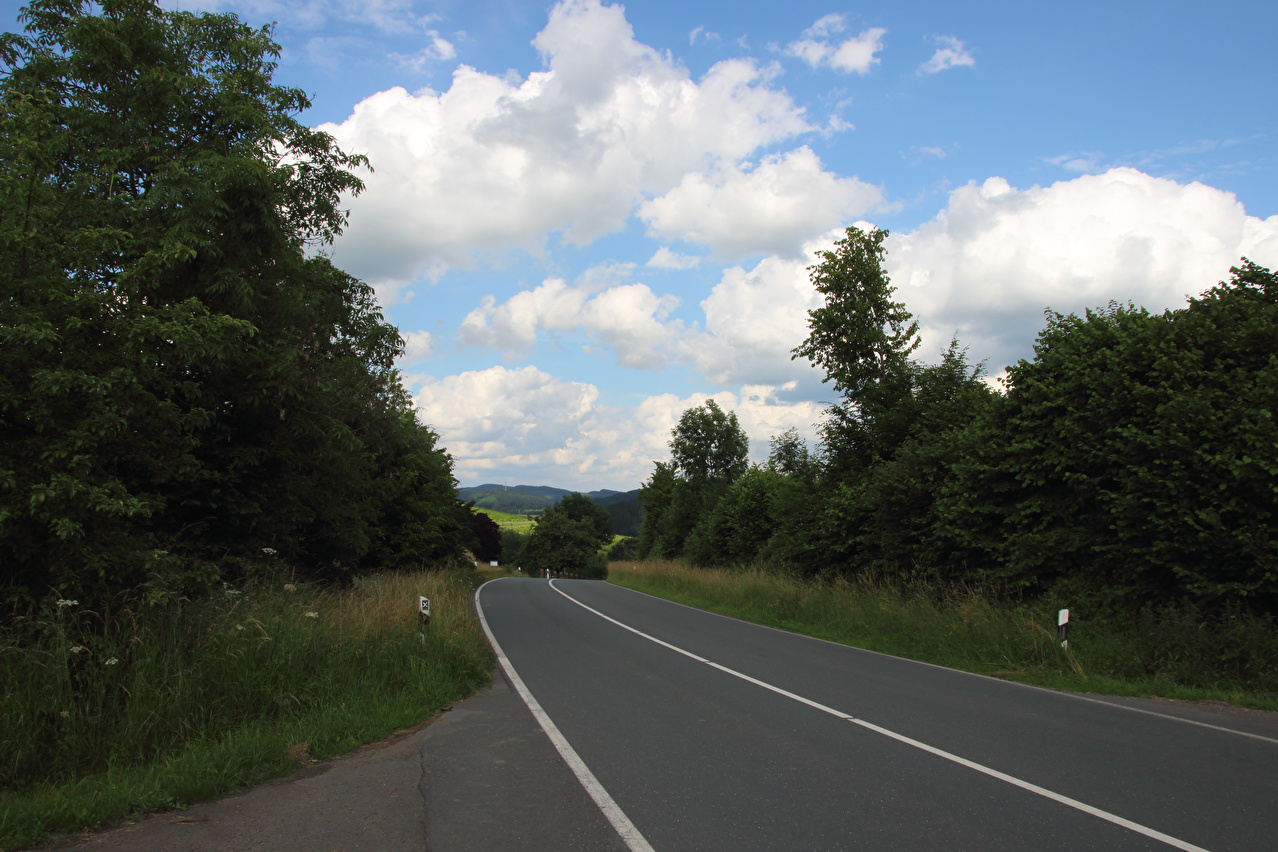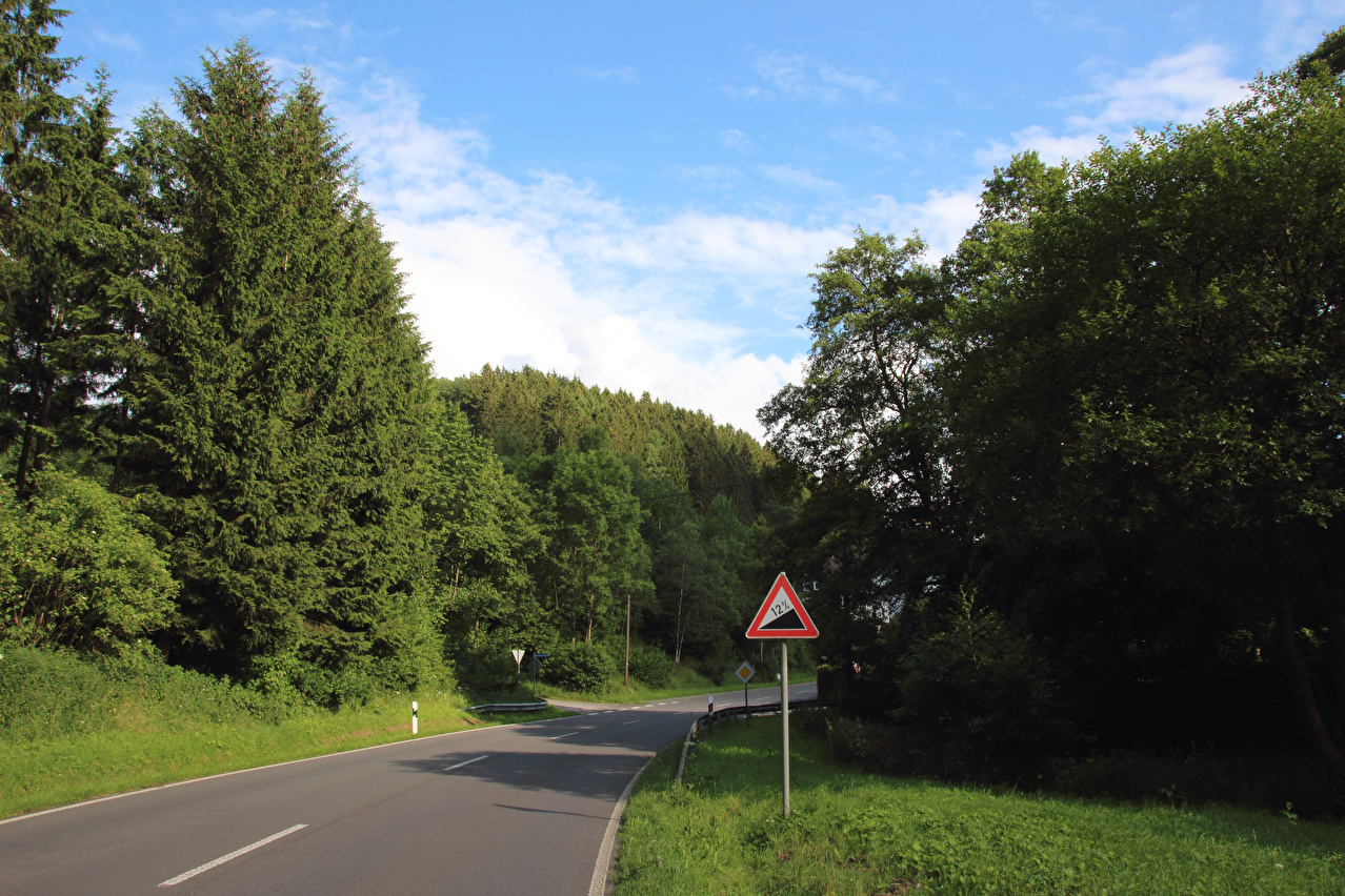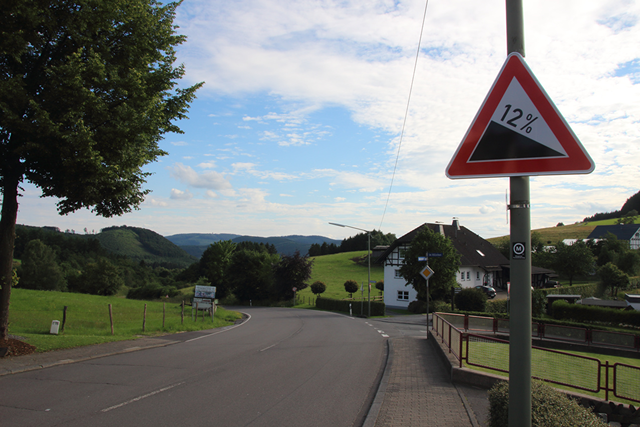 Beschreibung | Wie schon vor zwei Jahren war die Abfahrtzeit in Hannover etwas unglücklich gewählt worden, denn am Bahnsteig gegenüber wurde auch dieses Mal der Zug ins Fahrradparadies angekündigt. Für diese Tour führte die Bahnfahrt aber nur ins Sauerland, wobei die Bahnreise mit einer Dauer von ca. vier Stunden mit zweimal Umsteigen schon sehr grenzwertig war. Auf dem Zielbahnhof Meschede herrschte ein Baustellenchaos, das keine Fotos am Bahnsteig zuließ. Der Stinkeverkehr auf der B55 in Meschede erleichterte sehr die Entscheidung für die längere Route am anderen Ufer des Hennesees. Die Henne blieb bis Landenbeck ein ständiger Begleiter. Da der oberste Teil des Hennetals ab Landenbeck bereits am 20.05.2009 gefahren worden war, wurde dort nicht nach Oberhenneborn weiter im Hennetal gefahren, sondern selbiges mit der Überquerung des namenlosen Passes zwischen Landenbeck und Kirchilpe verlassen. Namenlose Bergpässe sind im Sauerland überhaupt so ein Thema. Pässe gibt es eine ganze Menge, aber auf keiner der Passhöhen steht ein Schild mit dem Namen des Passes und dessen Scheitelhöhe. Die Pässe im Sauerland haben natürlich bei weitem kein alpines Niveau, aber in einem Gebiet, das auch mit Fahrradtourismus wirbt, ist das Fehlen der Passhöhenschilder schon ärmlich. Allein im Zuge dieser Etappe wurden fünf namenlose Pässe überquert. Die ersten drei namenlosen Pässe zwischen Landenbeck und Kirchilpe, zwischen Nierentrop und Dorlar und zwischen Dorlar und Menkhausen sind recht harmlos. Der vierte namenlose Pass zwischen Menkhausen und Niederlandenbeck kommt gleich ab Menkhausen kurz und knackig mit bis zu 16 % Steigung richtig zur Sache. Dafür ist der namenlose Pass zwischen Niederlandenbeck und Henninghausen fast vernachlässigbar. Die sechste und siebte Steigung des Tages führten jeweils zu einer Ortschaft auf der Passhöhe. Der Anstieg nach Schwartmecke ist recht harmlos, was auch daran liegt, das er im Zuge der B55 liegt. Dafür hat es der letzte Anstieg nach Halberbracht mit bis zu 12 % Steigung und längeren Abschnitten über 10 % Steigung noch mal in sich. Von Halberbracht bergab nach Meggen geht es mit bis zu 12 % Gefälle. Das war also kurz vor Schluss noch eine heiße Sache für die Bremsen. Die Umfahrung von Halberbracht hätte zwar Höhenmeter gespart, dafür aber zu mehr Streckenkilometern auf einer landschaftlich unattraktiveren Strecke mit mehr Stinkeverkehr geführt. Und das Einsparen von Höhenmetern war bei dieser Tour so gar nicht das Ziel! Es gibt zwei Flüsse mit dem Namen „Lenne“ in Deutschland. Die längere und wasserreichere Lenne mündet in die Ruhr, die kürzere und wasserärmere in die Weser. Zur Unterscheidung werden die Flüsse daher auch Lenne (Ruhr) und Lenne (Weser) genannt. Im Rahmen dieser Tour ist mit „Lenne“ die Lenne (Ruhr) gemeint. |