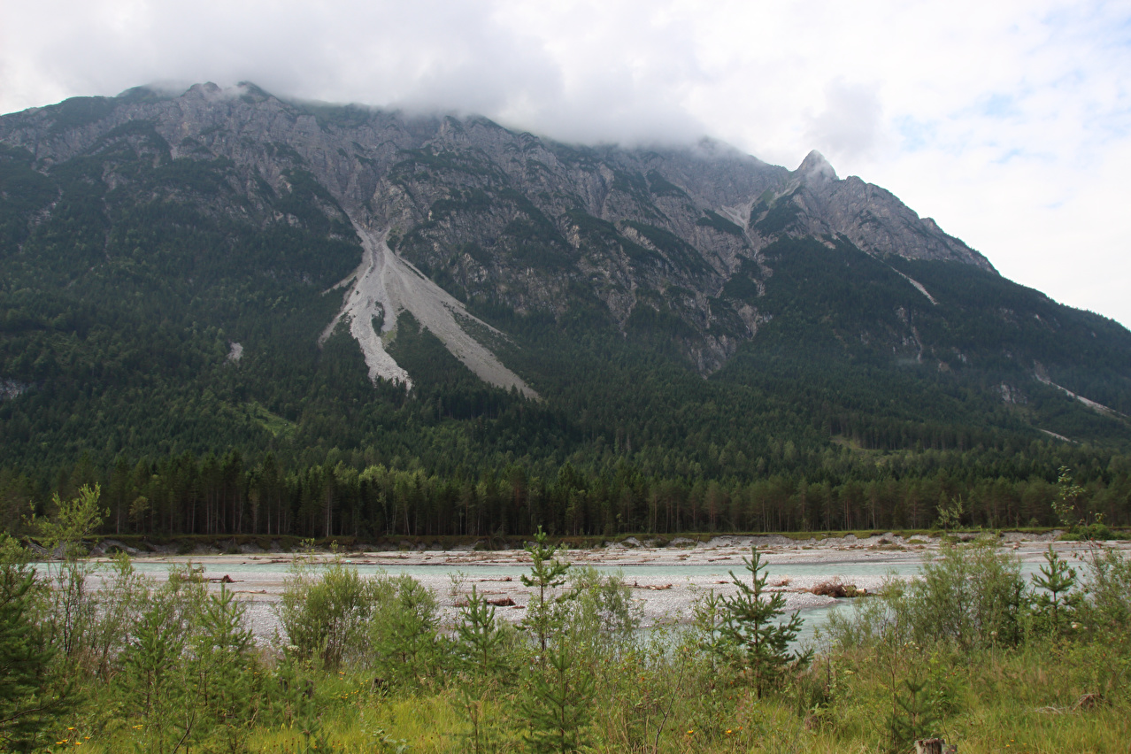 Blick über den Lech auf v. l. n. r.: Schartenberg und Mahdspitze ![]() 300 dpi JPEG |