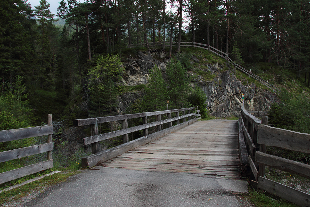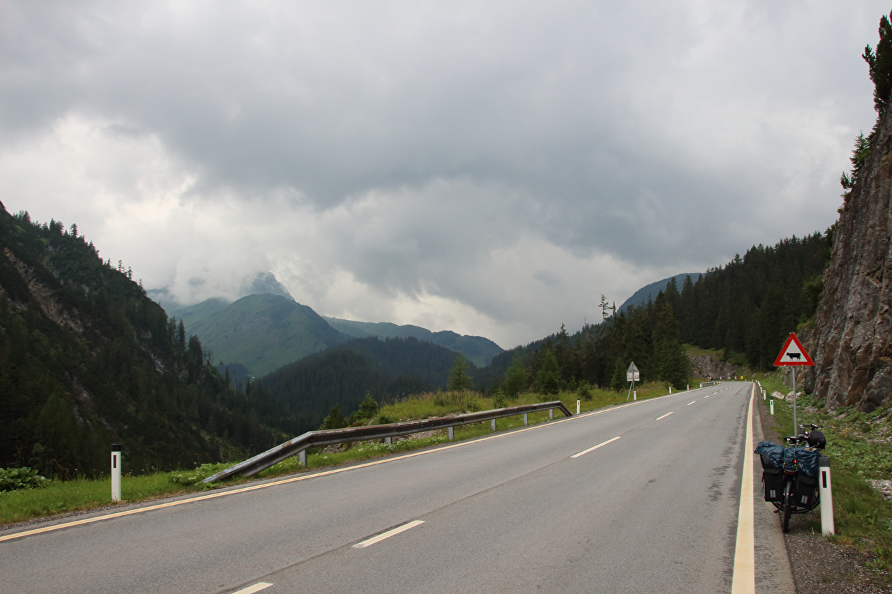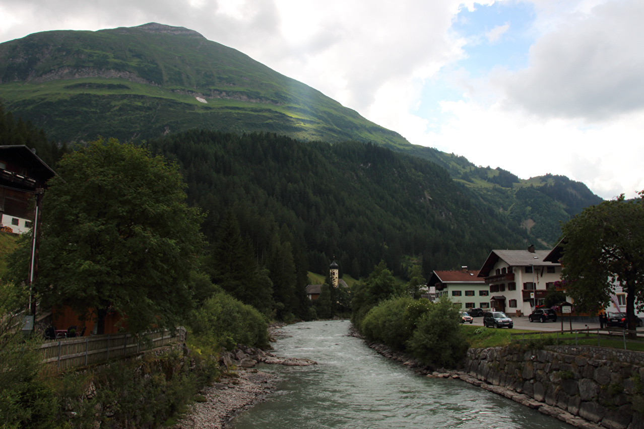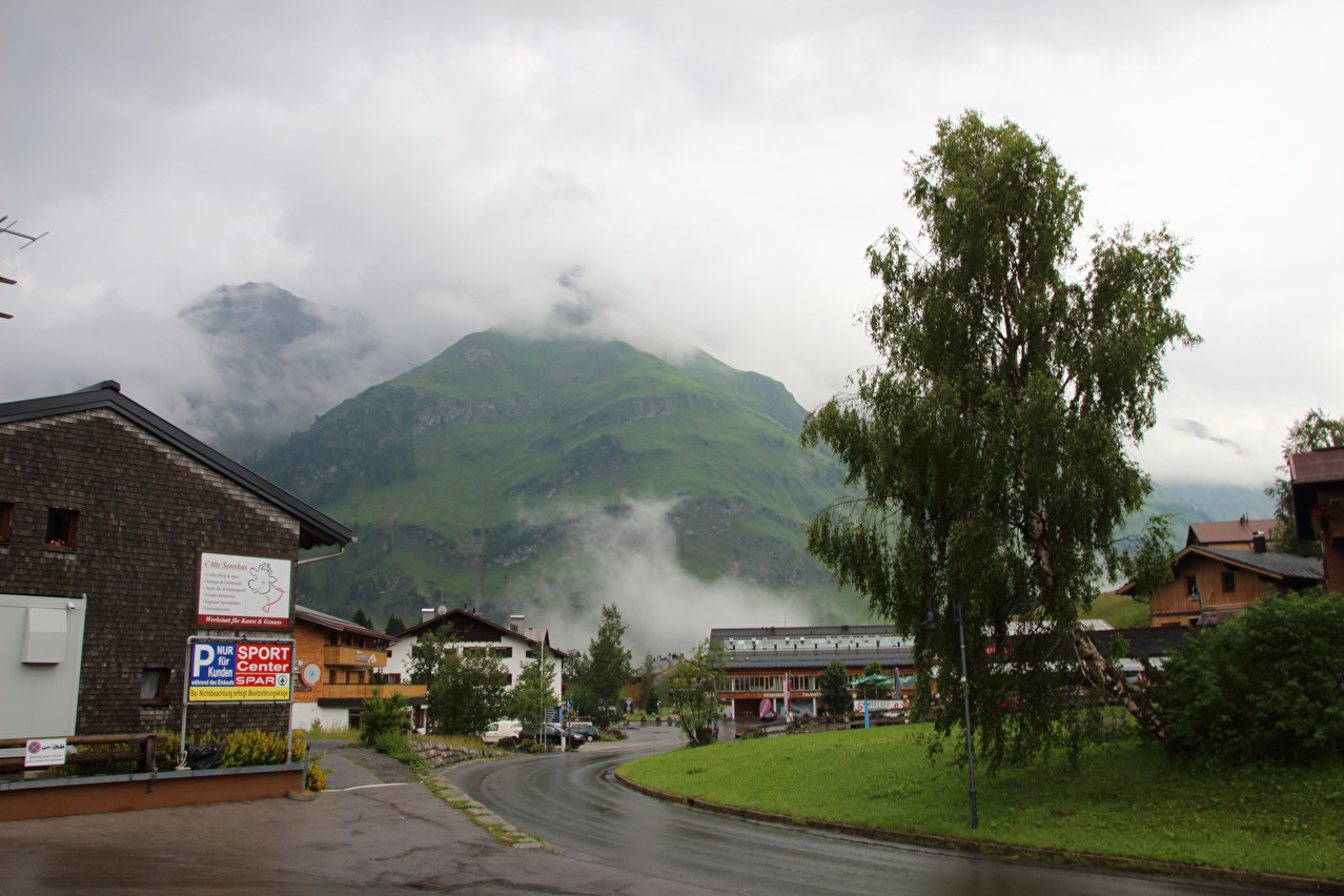 Beschreibung | Durchaus mit sonnigen Anteilen aber deutlich unaufgeräumt präsentierte siche der Himmel zum Etappenstart. Die hohe Luftfeuchtigkeit ließ auch nichts Gutes erwarten. Die Etappe begann zunächst mit einer Streckenwiederholung, denn der Abschnitt des Lechtalradwegs von Weißenbach am Lech bis kurz vor Elmen war schon einmal am 23.07.2012 gefahren worden. Damals erfolgte die Fahrt dort zum Ende der Etappe, sodass dieses Mal wenigstens eine durch die andere Tageszeit bedingte andere Lichtstimmung herrschte. Das Lechtal ist in diesem Bereich extrem mit Bremsen verseucht, und das feuchtwarme Wetter trieb diese widerlichen Blutsauger noch so richtig an. Bei nahezu jeder Pause herrschte daher sofort Stechbomberalarm, womit die Icaridin-Duschen unumgänglich wurden. In Steeg endet der Lechtalradweg als Sackgasse. Das Lechtal ändert oberhalb von Steeg seinen Charakter. Das Lechtal ist dort tief eingeschnitten, die steiler werdende Straße verläuft notwendigerweise im Hang. Platz für einen Radweg ist dort nicht vorhanden. Leider änderte an diesem Tag oberhalb von Steeg nicht nur das Lechtal seinen Charakter sondern auch das Wetter. Wie schon am Vortag setzte Starkregen ein, der bis zur Bergankunft in Warth auch nicht mehr aufhörte. In Warth angekommen folgte ein kurzer trockener Abschnitt, aber schon während des Abendessens setzte wieder kräftiger Regen ein, der sich bis tief in die Nacht hielt. |